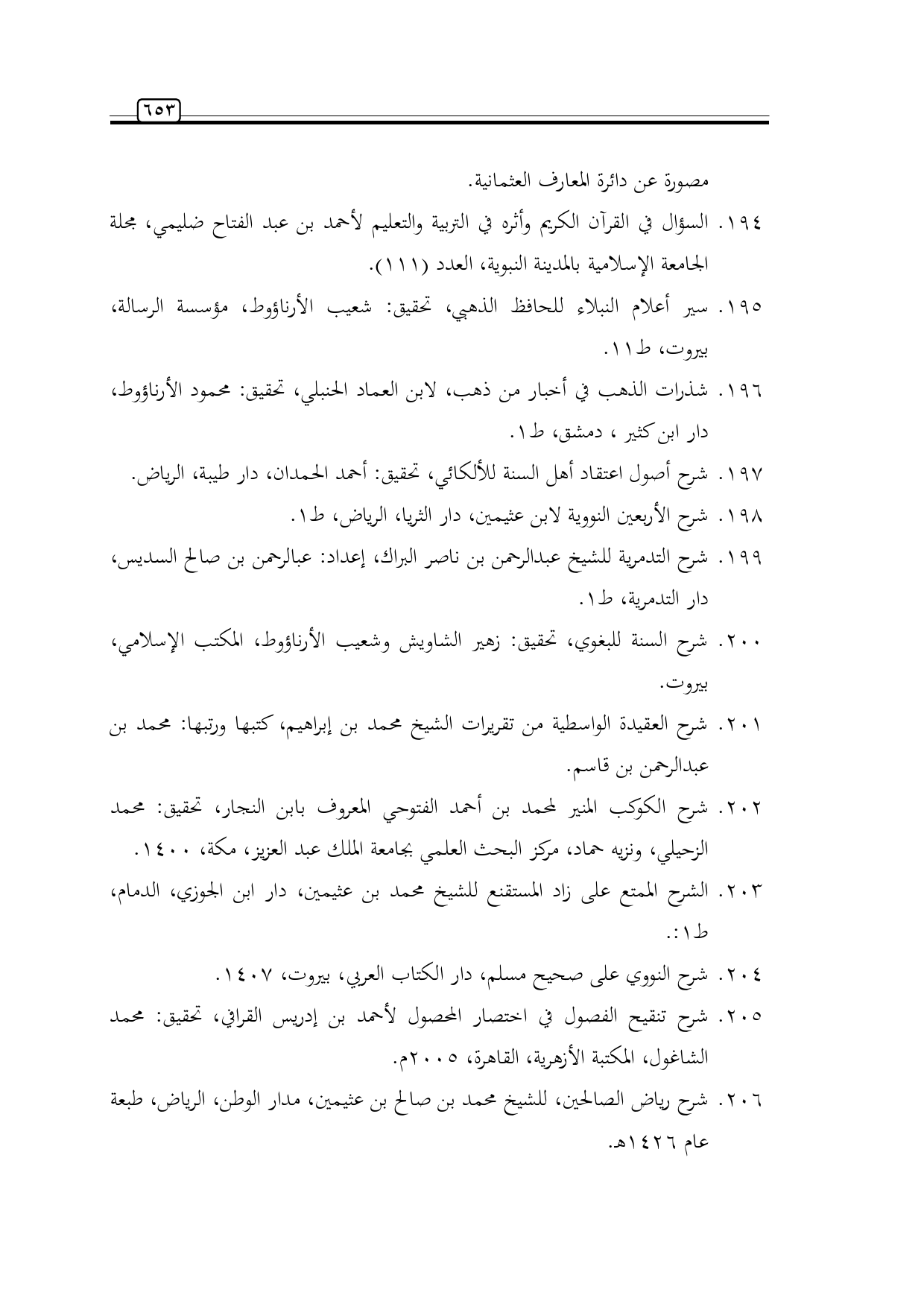 199. شرح التدمرية للشيخ عبدالرحمن بن ناصر البراك، إعداد: عبالرحمن بن صالح السديس، دار التدمرية، ط1.