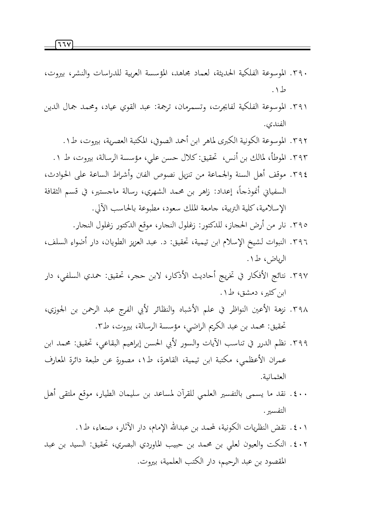 392. الموسوعة الكونية الكبرى لماهر ابن أحمد الصوفي، المكتبة العصرية، بيروت، ط1.