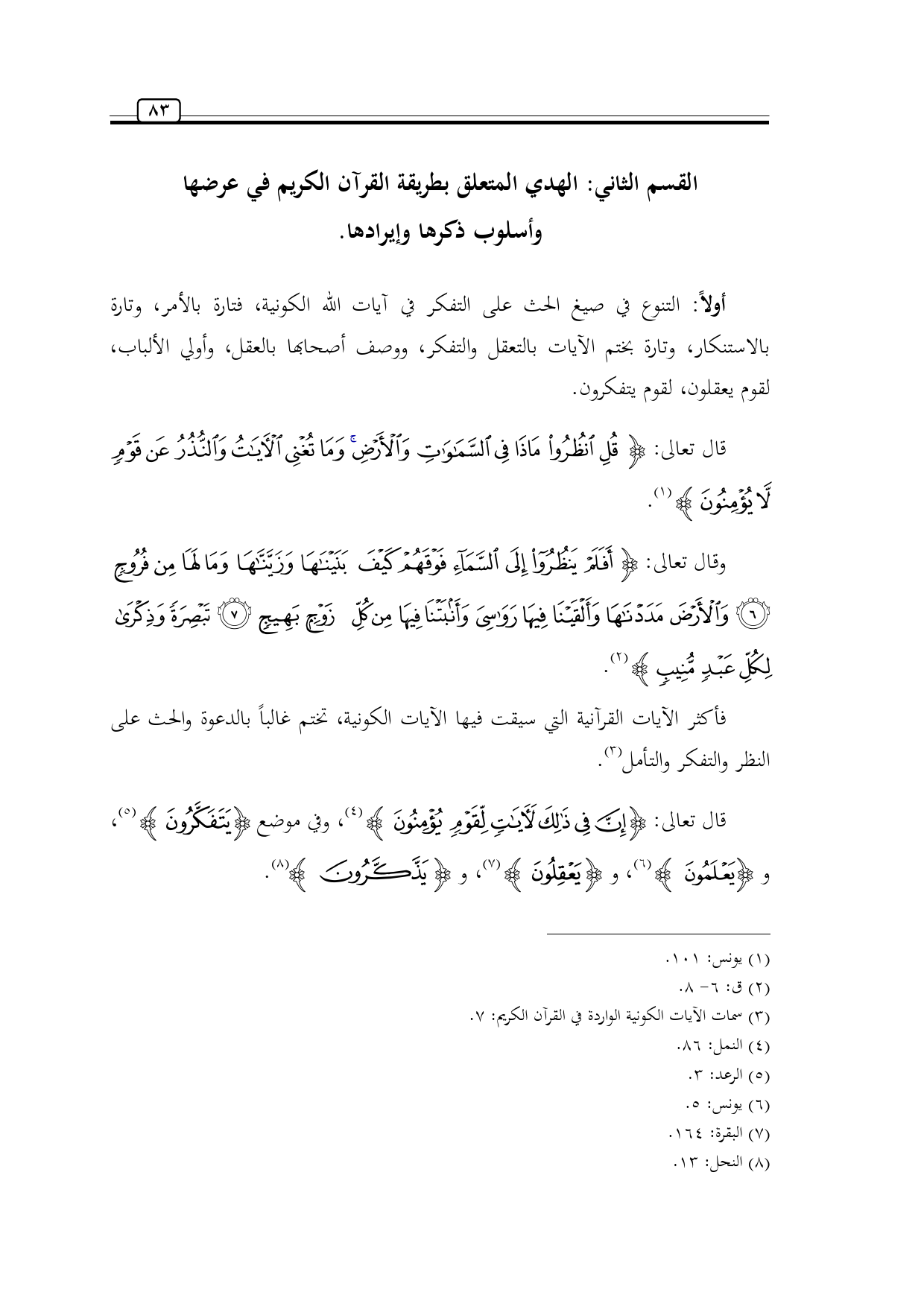 (¬3) سمات الآيات الكونية الواردة في القرآن الكريم: 7.
