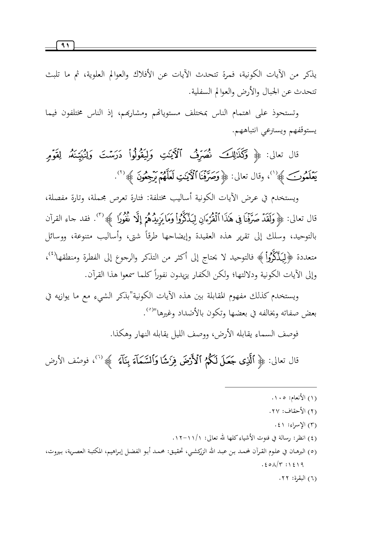 (¬5) البرهان في علوم القرآن لمحمد بن عبد الله الزركشي، تحقيق: محمد أبو الفضل إبراهيم، المكتبة العصرية، بيروت، 1419: 3/ 458.