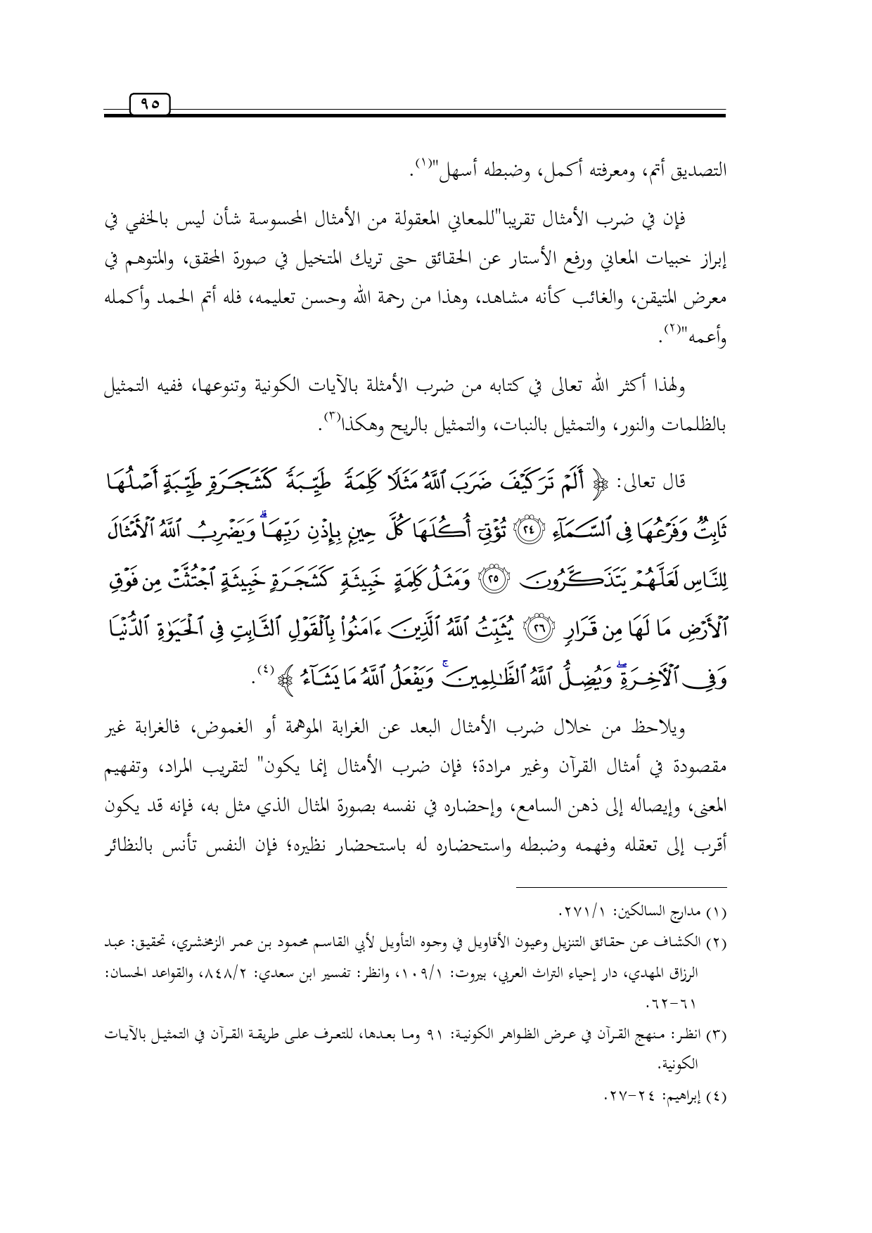 (¬2) الكشاف عن حقائق التنزيل وعيون الأقاويل في وجوه التأويل لأبي القاسم محمود بن عمر الزمخشري، تحقيق: عبد الرزاق المهدي، دار إحياء التراث العربي، بيروت: 1/ 109، وانظر: تفسير ابن سعدي: 2/ 848، والقواعد الحسان: 61 - 62.