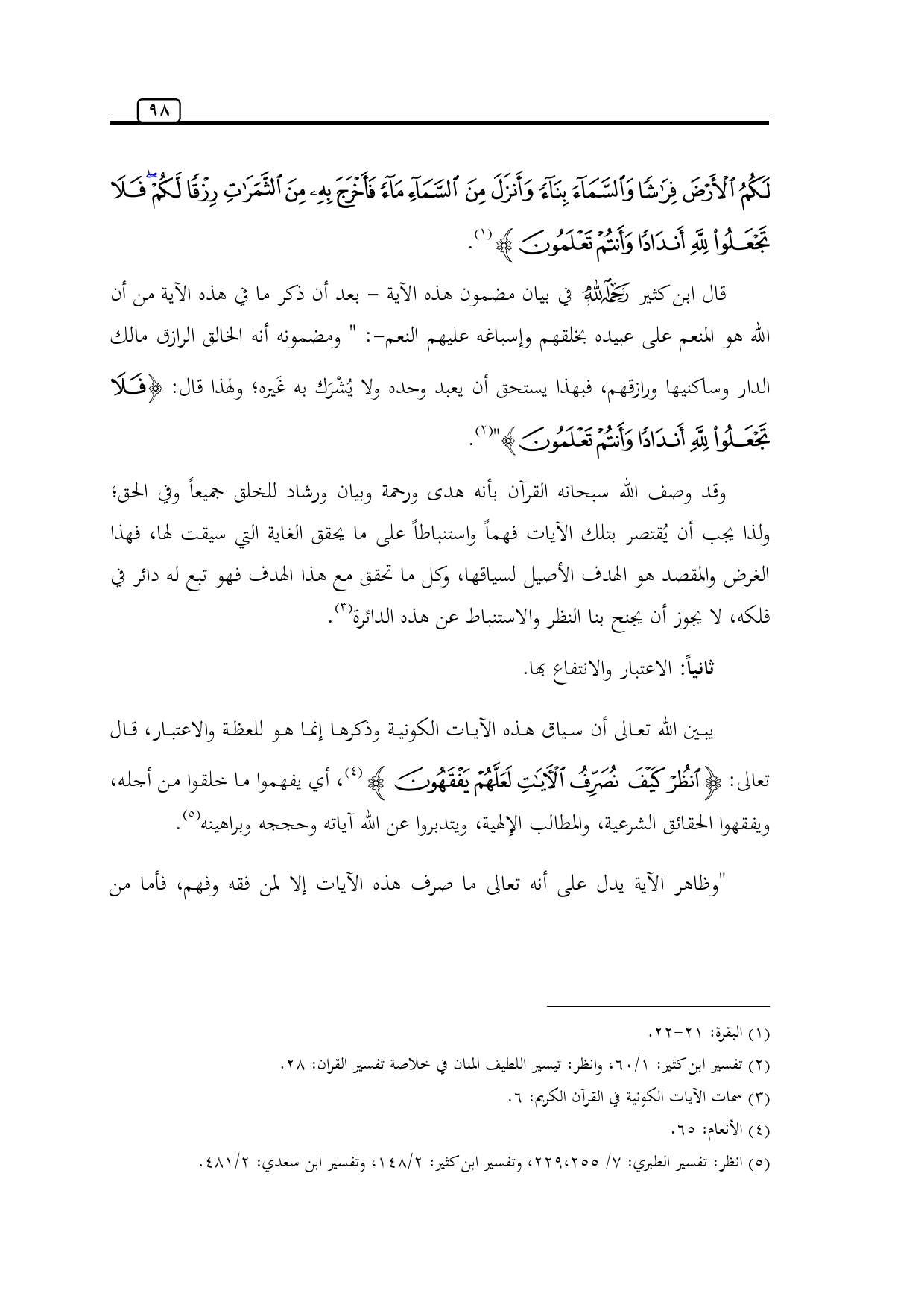 (¬2) تفسير ابن كثير: 1/ 60، وانظر: تيسير اللطيف المنان في خلاصة تفسير القران: 28.