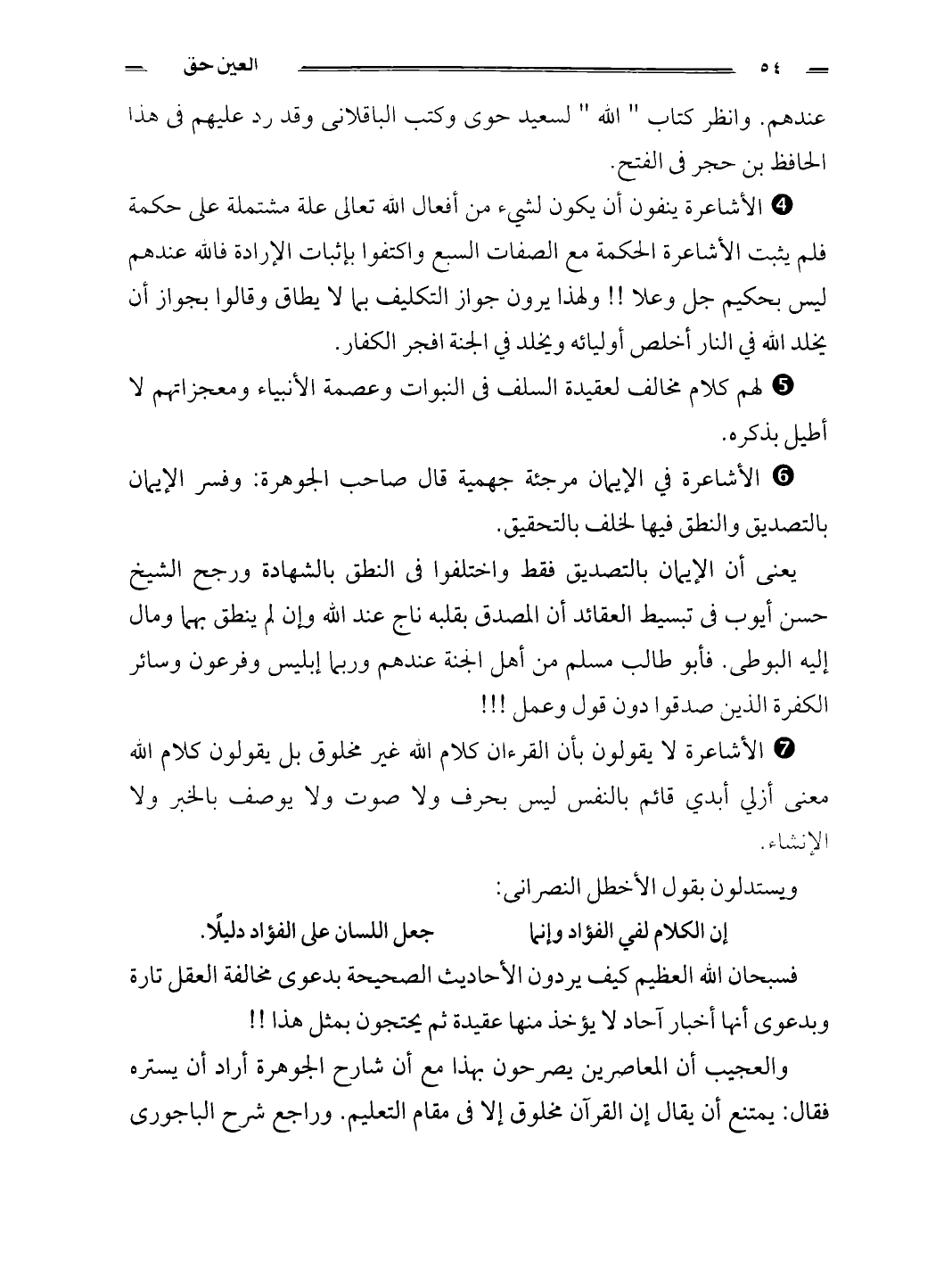 عندهم. وانظر كتاب " الله " لسعيد حوى وكتب الباقلانى وقد رد عليهم فى هذا الحافظ بن حجرفى الفتح