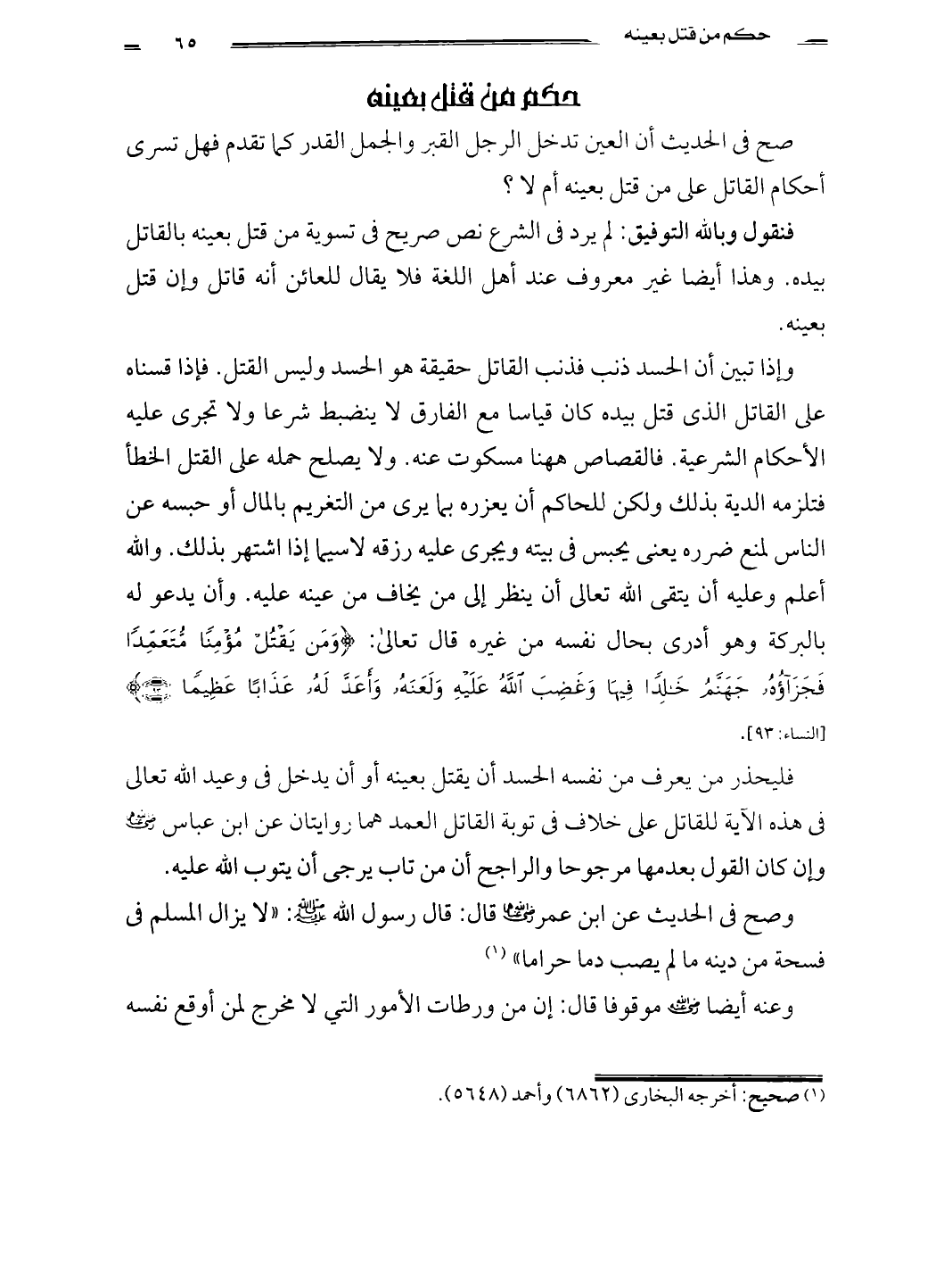 حكم من قتل بعينه