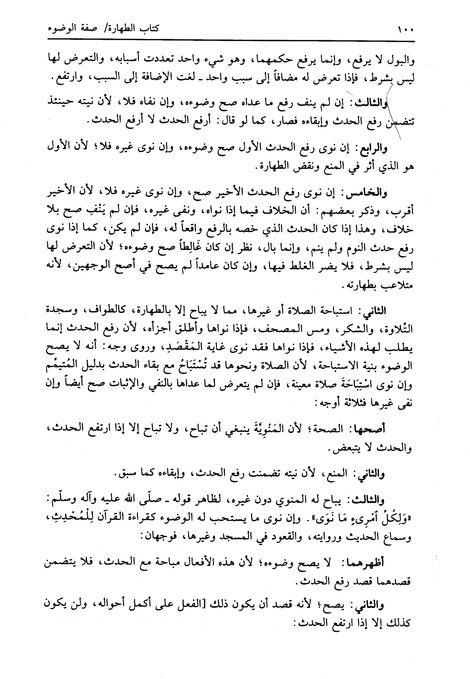 والثالث: إن لم ينف رفع ما عداه صح وضوءه، وإن نفاه فلا، لأن نيته حينئذ تتضمن رفع الحدث وإبقاءه فصار، كما لو قال: أرفع الحدث لا أرفع الحدث.