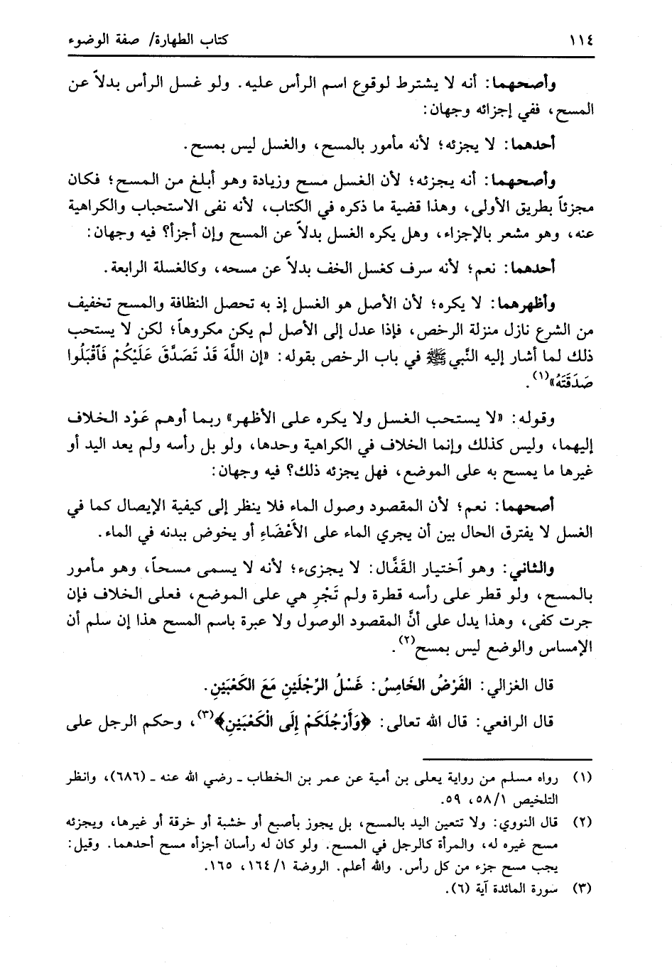 قال الغزالي: الفَرْضُ الخَامِسُ: غَسْلُ الرِّجْلَيْنِ مَعَ الكَعْبَيْنِ.