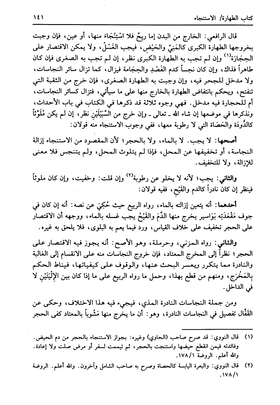 (¬2) قال في النووي: والبعرة اليابسة كالحصاة وصرح به صاحب الشامل وآخرون. والله أعلم. الروضة 1/ 178.