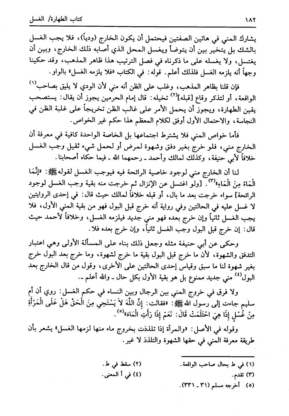 ولا فرق في خروج المني بين الرجال وبين النساء في حكم الغسل: روي أن أم سليم جاءت إلى رسول الله -صلى الله عليه وسلم-: "فقالت: إِنَّ اللهَ لاَ يَسْتَحِي مِنَ الْحَقِّ هَلْ عَلَى المَرْأَةِ مِنْ غُسْلِ إِذَا هِيَ احْتَلَمَتْ قَالَ: نَعَمْ إِذَا رَأَتِ الْمَاءَ" (¬5).