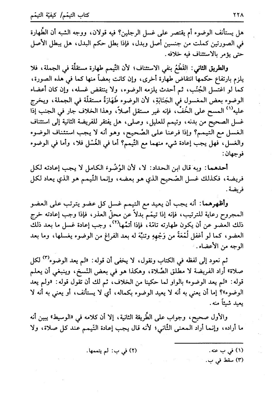 ثم نعود إلى لفظه في الكتاب ونقول، لا يخفى أن قوله: "لم يعد الوضوء (¬3) لكل صلاة" أراد الفريضة لا مطلق الصَّلاة، وهكذا هو في بعض النّسخ، وينبغي أن يعلم قوله: "لم يعد الوضوء" بالواو لما حكينا من الخلاف، ثم لك أن تقول قوله: "ولم يعد الوضوء"؟ إما أن يعني به أنه لا يعيد الوضوء بكماله، أي لا يستأنف، أو يعني به أنه لا يعيد شيئًا منه.
