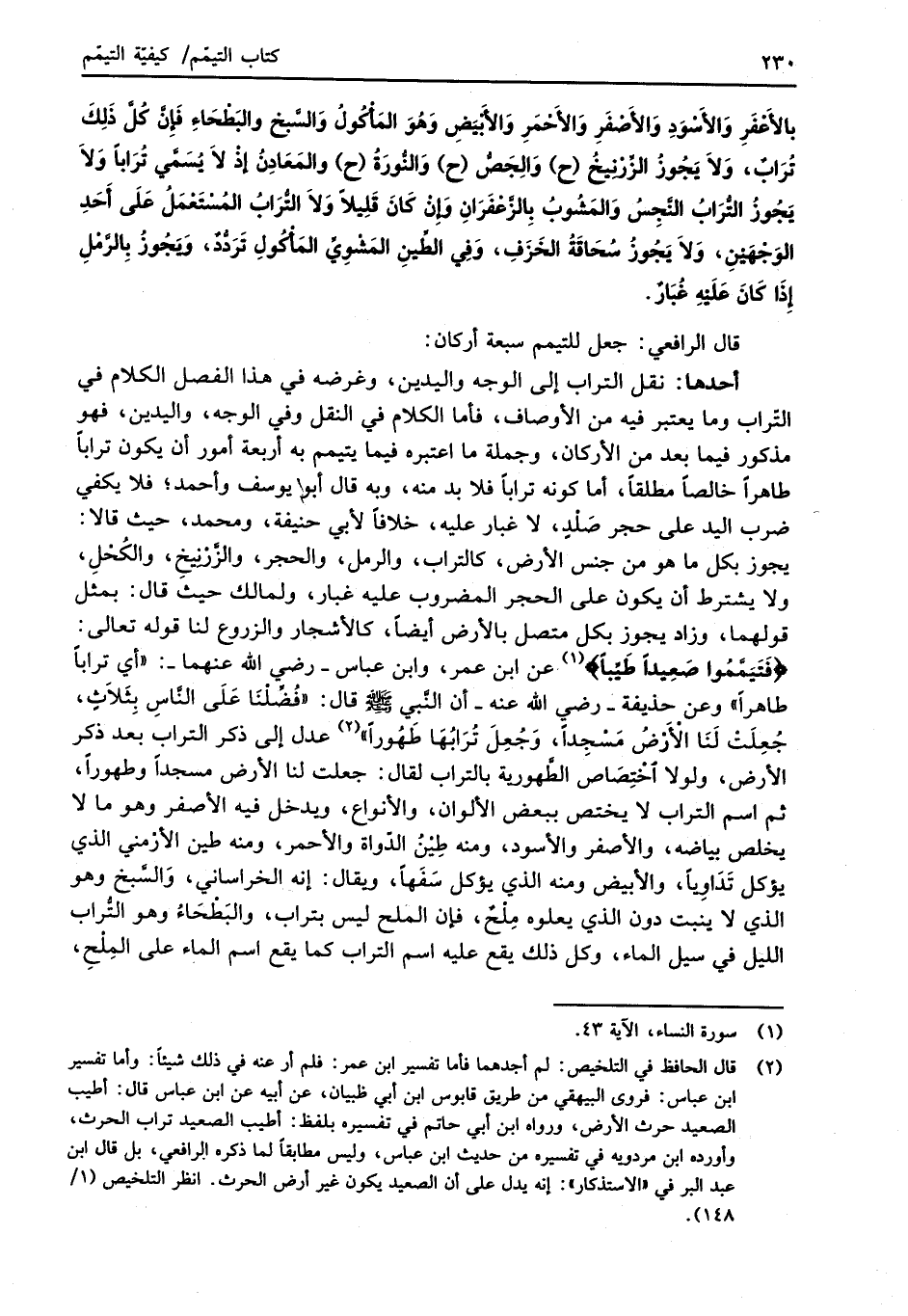(¬2) قال الحافظ في التلخيص: لم أجدهما فأما تفسير ابن عمر: فلم أر عنه في ذلك شيئاً: وأما تفسير ابن عباس: فروى البيهقي من طريق قابوس ابن أبي ظبيان، عن أبيه عن ابن عباس قال: أطيب الصعيد حرث الأرض، ورواه ابن أبي حاتم في تفسيره بلفظ: أطيب الصعيد تراب الحرث، وأورده ابن مردويه في تفسيره من حديث ابن عباس، وليس مطابقاً لما ذكره الرافعي، بل قال ابن عبدا البر في "الاستذكار": إنه يدل على أن الصعيد يكون غير أرض الحرث. انظر التلخيص (1/ 148).