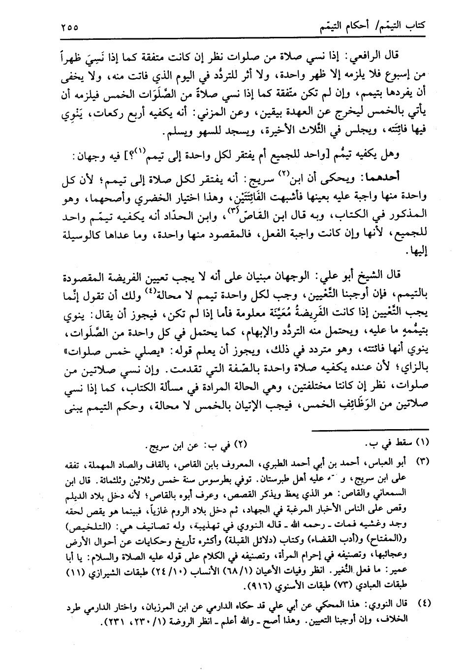 (¬4) قال النووي: هذا المحكي عن أبي علي قد حكاه الدارمي عن ابن المرزبان، واختار الدارمي طرد الخلاف، وإن أوجبنا التعيين. وهذا أصح -والله أعلم- انظر الروضة (1/ 230، 231).