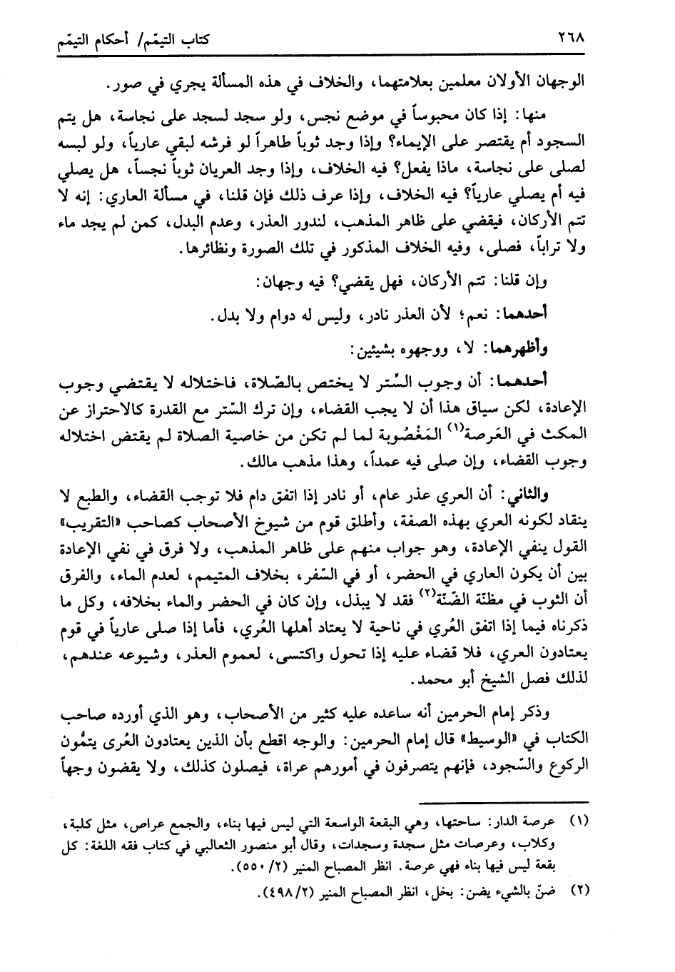 (¬1) عرصة الدار: ساحتها، وهي البقعة الواسعة التي ليس فيها بناء، والجمع عراص، مثل كلبة، وكلاب، وعرصات مثل سجدة وسجدات، وقال أبو منصور الثعالبي في كتاب فقه اللغة: كل بقعة ليس فيها بناء فهي عرصة. انظر المصباح المنير (2/ 550).