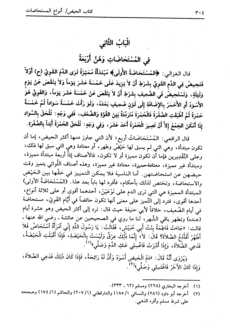 الْبَابُ الثَّانِي فِي المُسْتَحَاضَاتِ وَهُنَّ أَرْبَعَةٌ