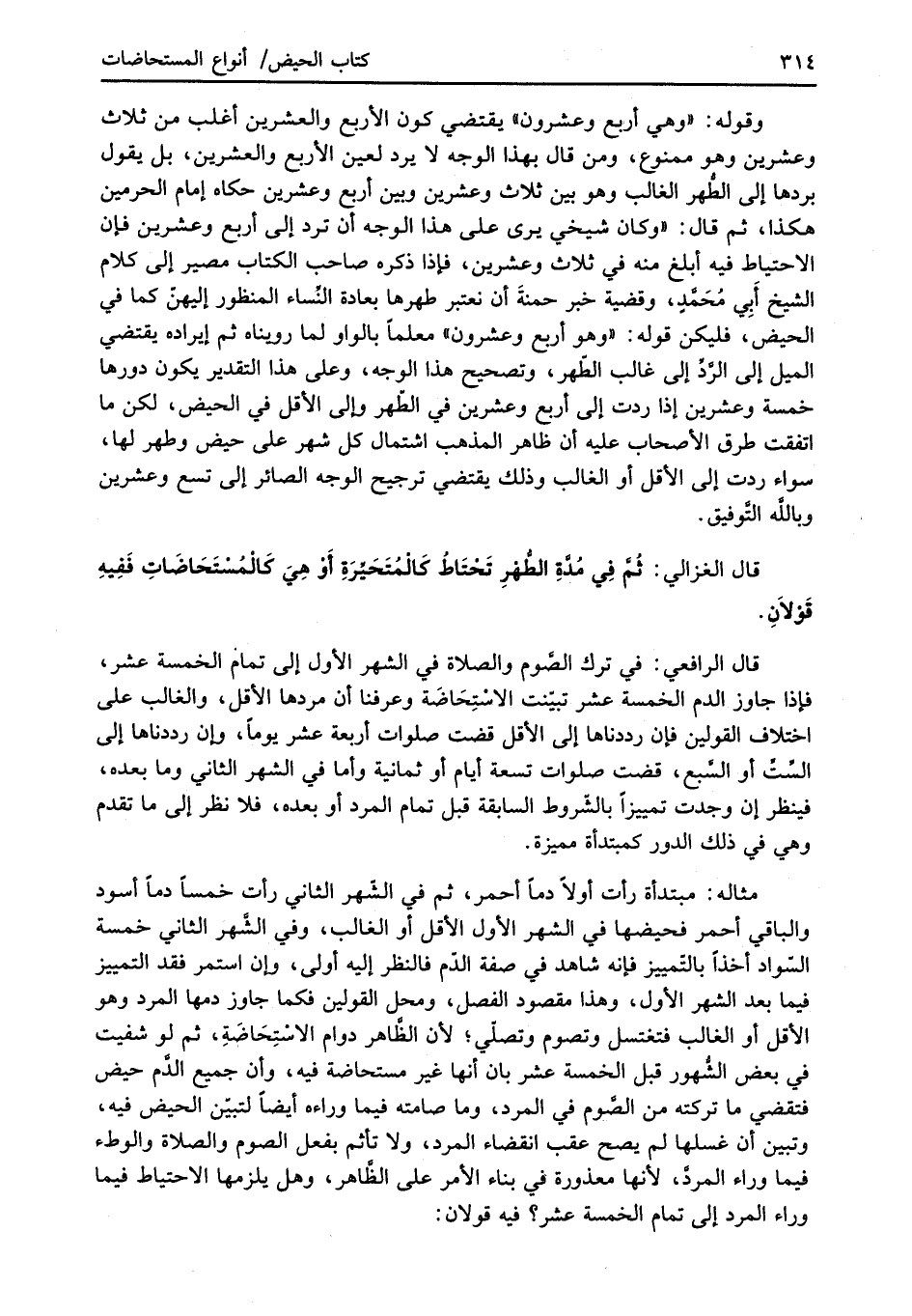 وقوله: "وهي أربع وعشرون" يقتضي كون الأربع والعشرين أغلب من ثلاث وعشرين وهو ممنوع، ومن قال بهذا الوجه لا يرد لعين الأربع والعشرين، بل يقول بردها إلى الطُّهر الغالب وهو بين ثلاث وعشرين وبين أربع وعشرين حكاه إمام الحرمين هكذا، ثم قال: "وكان شيخي يرى على هذا الوجه أن ترد إلى أربع وعشرين فإن الاحتياط فيه أبلغ منه في ثلاث وعشرين، فإذا ذكره صاحب الكتاب مصير إلى كلام الشيخ أَبِي مُحَمَّدٍ، وقضية خبر حمنةَ أن نعتبر طهرها بعادة النِّساء المنظور إليهنّ كما في الحيض، فليكن قوله: "وهو أربع وعشرون" معلماً بالواو لما رويناه ثم إيراده يقتضي الميل إلى الرَّدِّ إلى غالب الطّهر، وتصحيح هذا الوجه، وعلى هذا التقدير يكون دورها خمسة وعشرين إذا ردت إلى أربع وعشرين في الطّهر وإلى الأقل في الحيض، لكن ما اتفقت طرق الأصحاب عليه أن ظاهر المذهب اشتمال كل شهر على حيض وطهر لها، سواء ردت إلى الأقل أو الغالب وذلك يقتضي ترجيح الوجه الصائر إلى تسع وعشرين وبالله التَّوفيق.