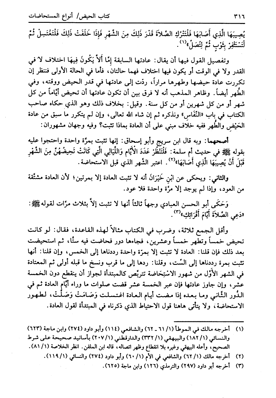 وأقل الجمع ثلاثة، وضرب في الكتاب مثالاً لهذه القاعدة، فقال: لو كانت تحيض خمساً وتطهر خمساً وعشرين، فجاءها دور فحاضت فيه ستًّا، ثم استحيضت بعد ذلك فإن قلنا: العادة لا تثبت إلا بمرّة واحدة رددناها إلى الخمس، وإن قلنا: أنها تثبت بمرة رددناها إلى السِّت، وقلنا: ردها إلى ما قرب ونسخ ما قبله أولى ثم المعتادة في الشهر الأَوَّل من شهور الاسْتِحَاضة تتربَّص كالمبتدأة لجواز أن ينقطع دون الخمسة عشر، وإن جاوز عادتها فإن عبر الخمسة عشر قضت صلوات ما وراء أيَّام العادة ثم في الدُّور الثَّاني وما بعده إذا مضت أيام العادة اغتسلت وَصَامَتْ وَصَلَّتْ، لطهور الاستحاضة، ولا يتأتى هاهنا قول الاحتياط الذي ذكرناه في المبتدأة لقول العادة.