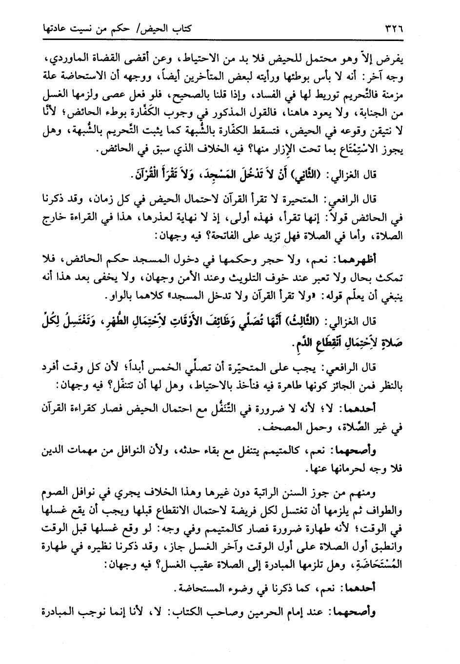 قال الغزالي: (الثَّانِي) أَنْ لاَ تَدْخُلَ المَسْجِدَ، وَلاَ تَقْرَأَ الْقُرْآنَ.
