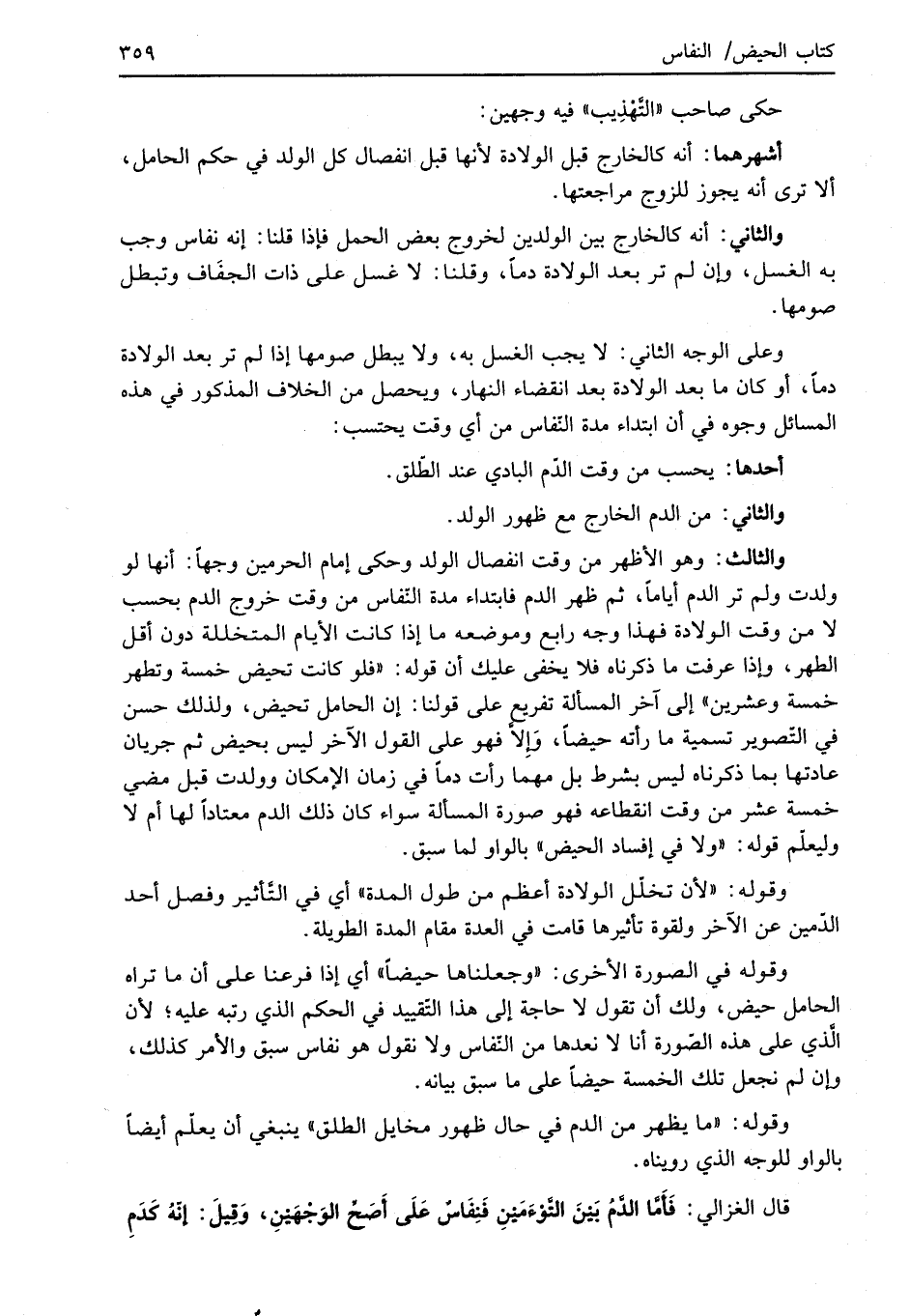 قال الغزالي: فَأَمَّا الدَّمُ بَيْنَ التَّوْءَمَيْنِ فَنِفَاسٌ عَلَى أَصَحِّ الوَجْهَيْنِ، وَقِيلَ: إِنَّهُ كَدَمِ