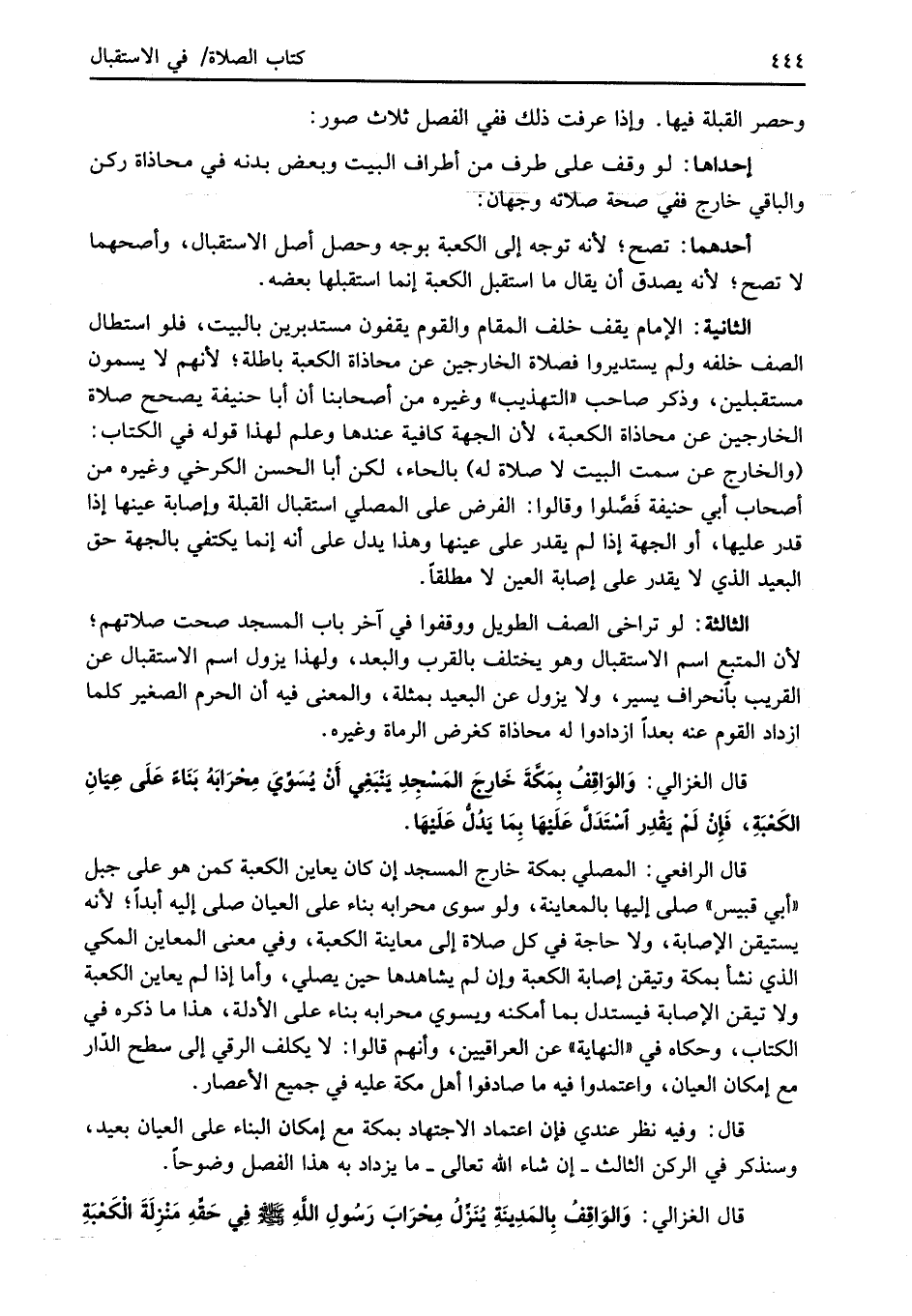 وحصر القبلة فيها. وإذا عرفت ذلك ففي الفصل ثلاث صور: