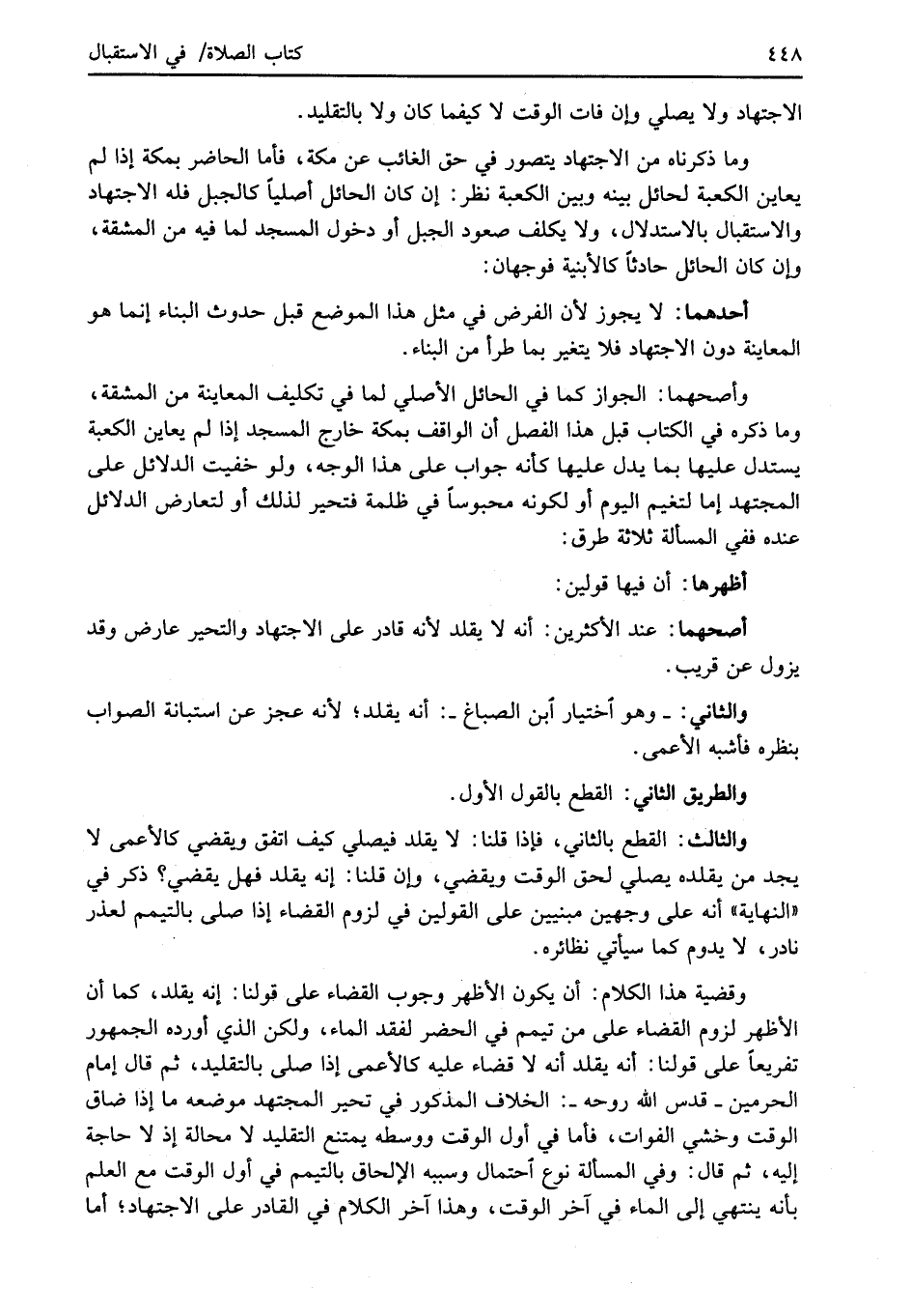 الاجتهاد ولا يصلي وإن فات الوقت لا كيفما كان ولا بالتقليد.
