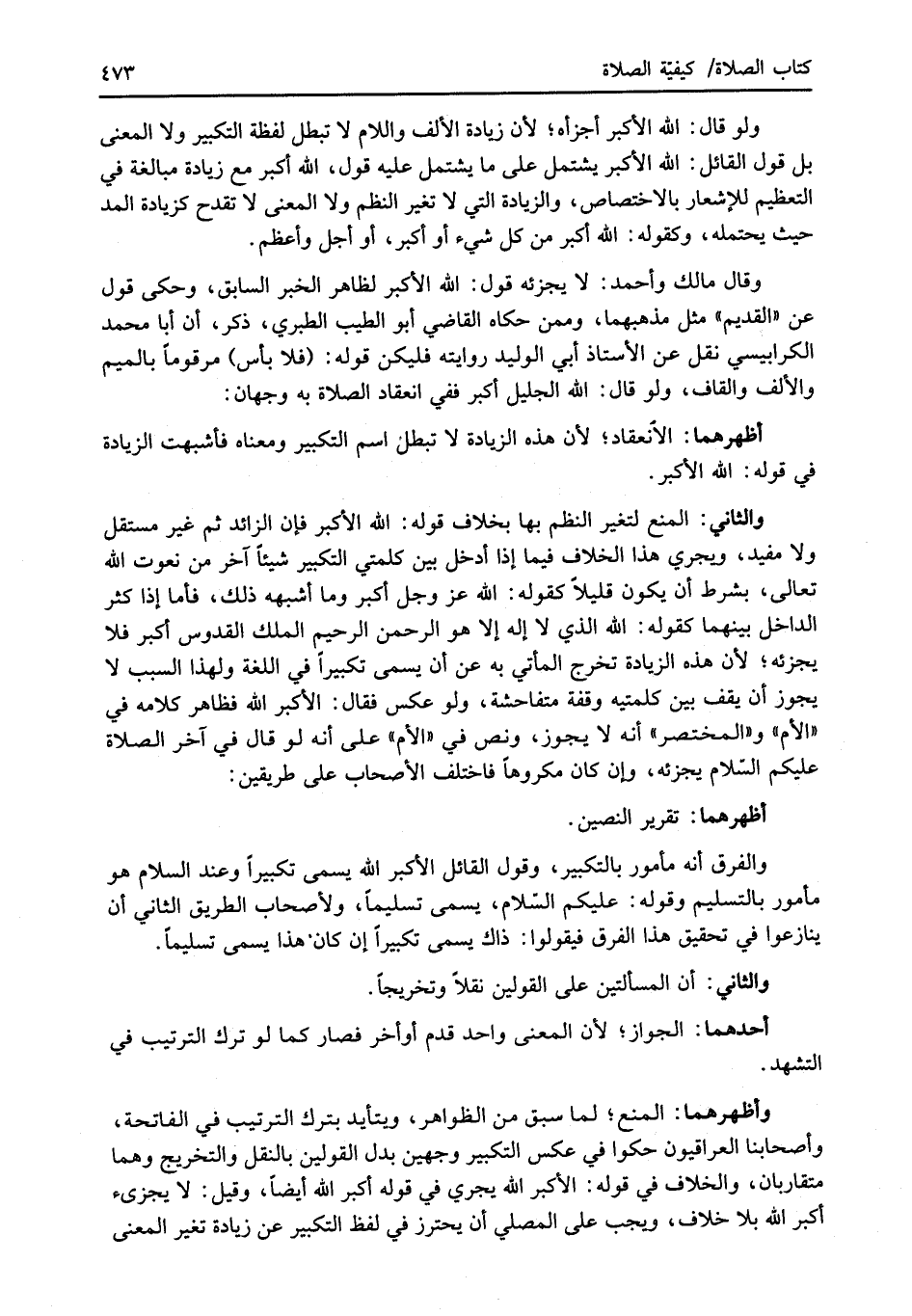 والفرق أنه مأمور بالتكبير، وقول القائل الأكبر الله يسمى تكبيراً وعند السلام هو مأمور بالتسليم وقوله: عليكم السّلام، يسمى تسليمًا، ولأصحاب الطريق الثاني أن ينازعوا في تحقيق هذا الفرق فيقولوا: ذاك يسمى تكبيرًا إن كان هذا يسمى تسليمًا.