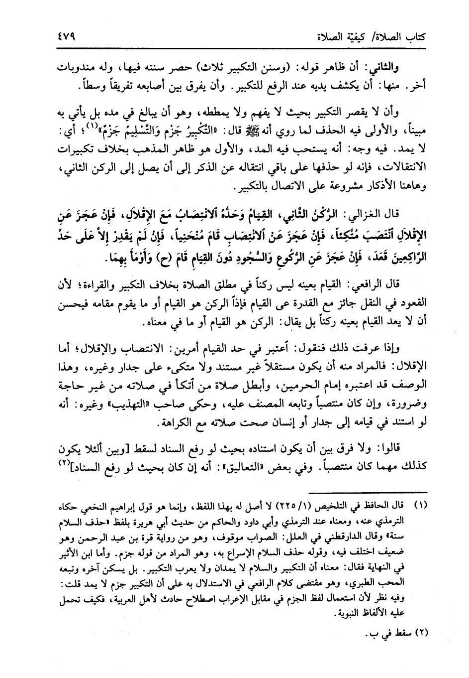 (¬1) قال الحافظ في التلخيص (1/ 225) لا أصل له بهذا اللفظ، وإنما هو قول إبراهيم النخعي حكاه الترمذي عنه، ومعناه عند الترمذي وأبي داود والحاكم من حديث أبي هريرة بلفظ "حذف السلام سنة" وقال الدارقطني في العلل: الصواب موقوف، وهو من رواية قرة بن عبد الرحمن وهو ضعيف اختلف فيه، وقوله حذف السلام الإسراع به، وهو المراد من قوله جزم. وأما ابن الأثير في النهاية فقال: معناه أن التكبير والسلام لا يمدان ولا يعرب التكبير. بل يسكن آخره وتبعه المحب الطبري، وهو مقتضى كلام الرافعي في الاستدلال به على أن التكبير جزم لا يمد قلت: وفيه نظر لأن استعمال لفظ الجزم في مقابل الاعراب اصطلاح حادث لأهل العربية، فكيف تحمل عليه الألفاظ النبوية.