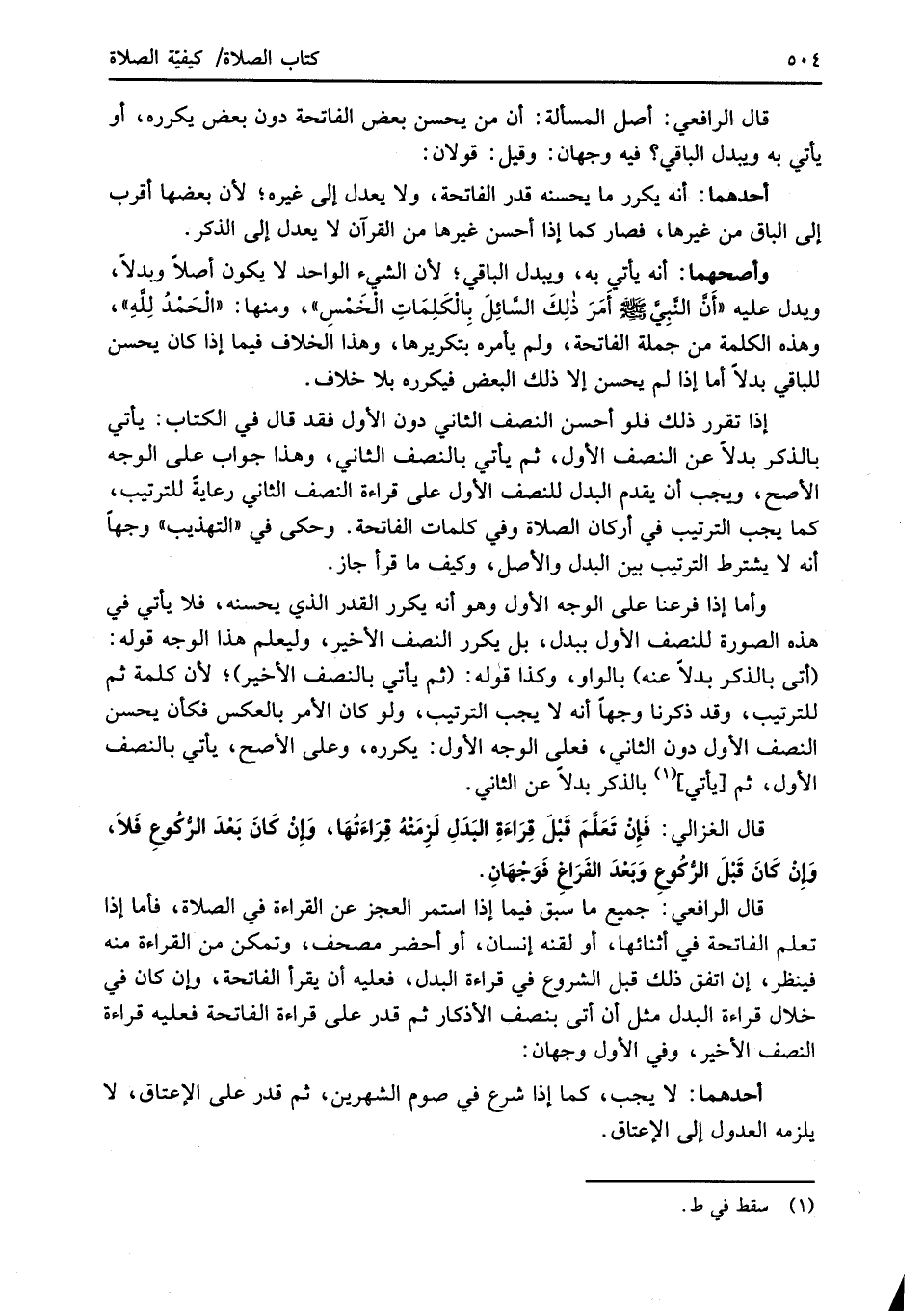 قال الغزالي: فَإِنْ تَعَلَّمَ قَبْلَ قِرَاءَةِ البَدَلِ لَزِمَتْهُ قِرَاءَتُهَا، وإنْ كَانَ بَعْدَ الرُّكُوعِ فَلاَ، وإنْ كَانَ قَبْلَ الرُّكُوعِ وَبَعْدَ الفَرَاغِ فَوَجْهَانِ.