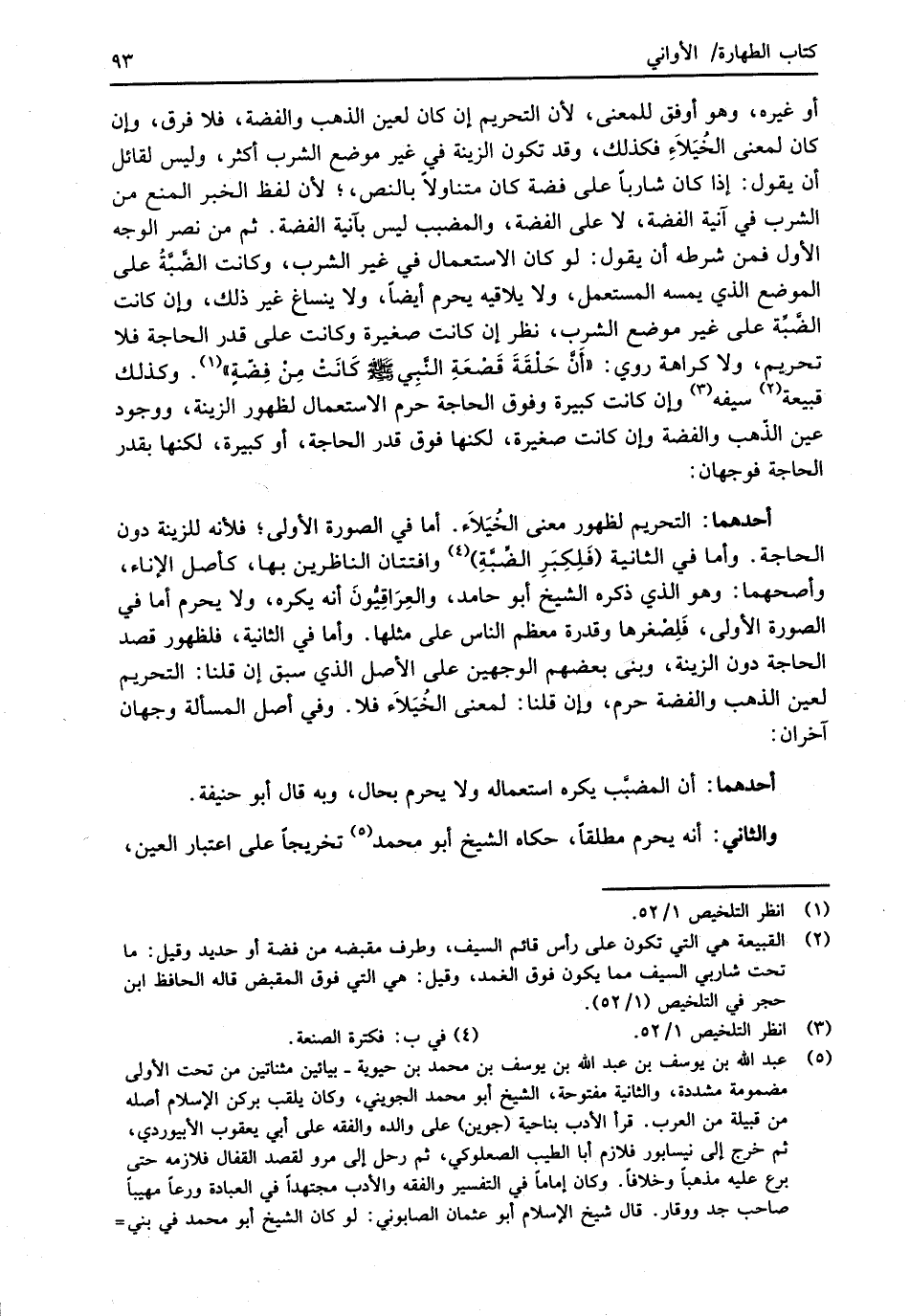 أحدهما: التحريم لظهور معنى الخُيَلاءَ. أما في الصورة الأولى؛ فلأنه للزينة دون الحاجة. وأما في الثانية (فَلِكِبَرِ الضِّبَّةِ) (¬4) وافتتان الناظرين بها، كأصل الإناء، وأصحهما: وهو الذي ذكره الشيخ أبو حامد، والعِرَاقِيُّونَ أنه يكره، ولا يحرم أما في الصورة الأولى، فَلِصْغرها وقدرة معظم الناس على مثلها. وأما في الثانية، فلظهور قصد الحاجة دون الزينة، وبنى بعضهم الوجهين على الأصل الذي سبق إن قلنا: التحريم لعين الذهب والفضة حرم، وإن قلنا: لمعنى الخُيَلاَء فلا. وفي أصل المسألة وجهان آخران:
