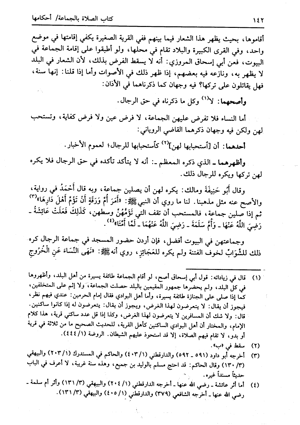 أما النساء فلا تفرض عليهن الجماعة، لا فرض عين ولا فرض كفاية، وتستحب لهن ولكن فيه وجهان ذكرهما القاضي الروياني: