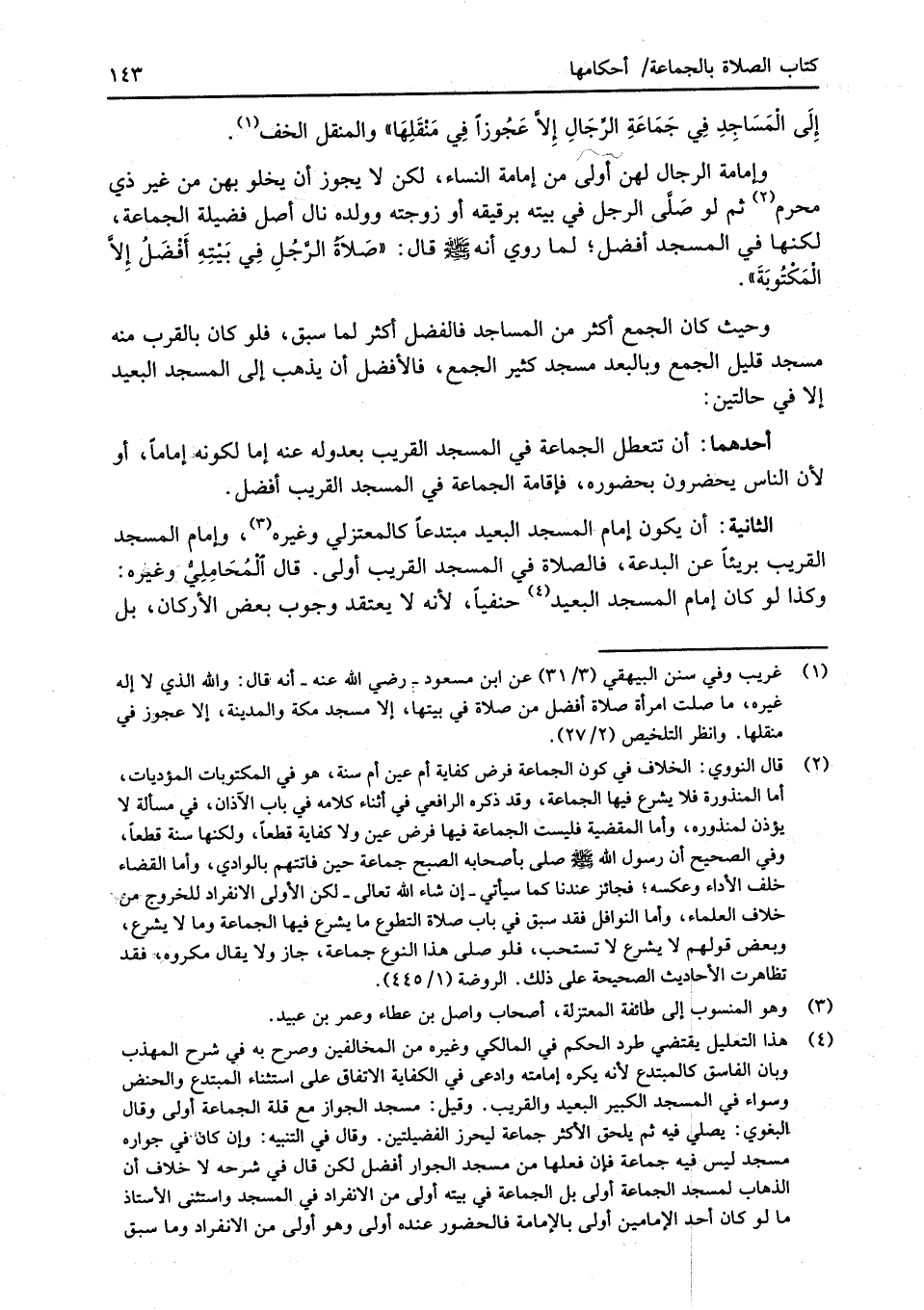 وحيث كان الجمع أكثر من المساجد فالفضل أكثر لما سبق، فلو كان بالقرب منه مسجد قليل الجمع وبالبعد مسجد كثير الجمع، فالأفضل أن يذهب إلى المسجد البعيد إلا في حالتين: