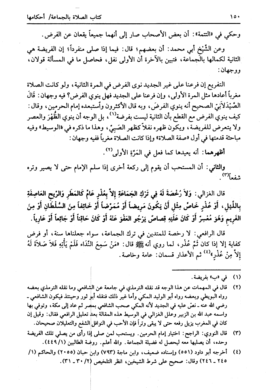 (¬3) قال النووي: الراجح: اختيار إمام الحرمين. ويستحب لمن صلى إذا رأى من يصلي تلك الفريضة وحده، أن يصليها معه ليحصل له فضيلة الجماعة. والله أعلم. روضة الطالبين (1/ 449).