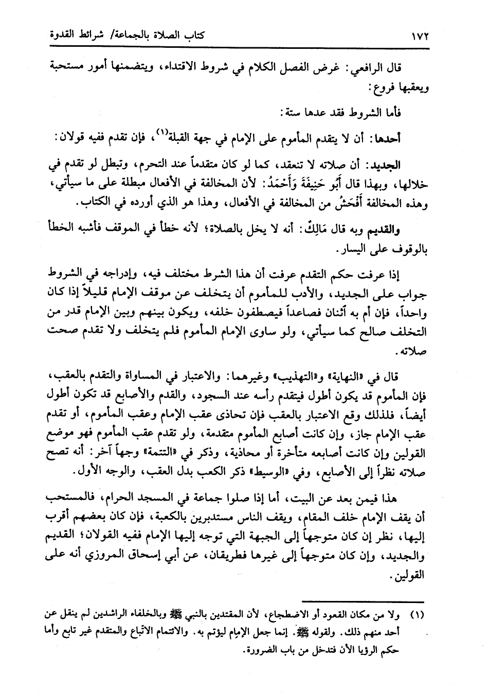 (¬1) ولا من مكان القعود أو الاضطجاع، لأن المقتدين بالنبي -صلى الله عليه وسلم- وبالخلفاء الراشدين لم ينقل عن أحد منهم ذلك. ولقوله -صلى الله عليه وسلم-. إنما جعل الإمام ليؤتم به. والائتمام الاتّباع والمتقدم غير تابع وأما حكم الرؤيا الآن فتدخل من باب الضرورة.