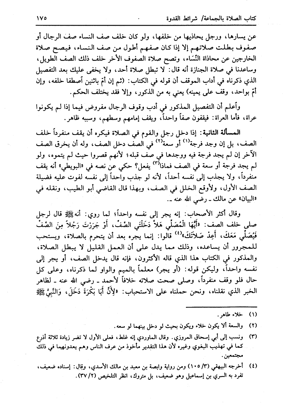 واعلم أن التفصيل المذكور في أدب وقوف الرجال مفروض فيما إذا لم يكونوا عراة، فأما العراة: فيقفون صفاً واحداً، ويقف إمامهم وسطهم، وسببه ظاهر.