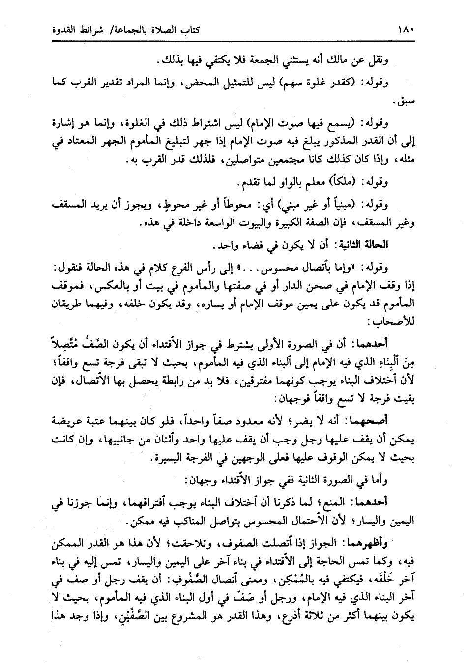 أحدهما: أن في الصورة الأولى يشترط في جواز الاقتداء أن يكون الصف مُتَّصِلاً مِنَ الْبِنَاءِ الذي فيه الإمام إلى البناء الذي فيه المأموم، بحيث لا تبقى فرجة تسع واقفاً؛ لأن اختلاف البناء يوجب كونهما مفترقين، فلا بد من رابطة يحصل بها الاتصال، فإن بقيت فرجة لا تسع واقفاً فوجهان: