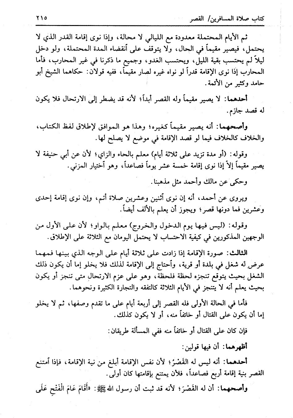 وأصحهما: أن له القَصْرَ؛ لأنه قد ثبت أن رسول الله -صلى الله عليه وسلم-: "أَقَامَ عَامَ الْفَتْحِ عَلَى