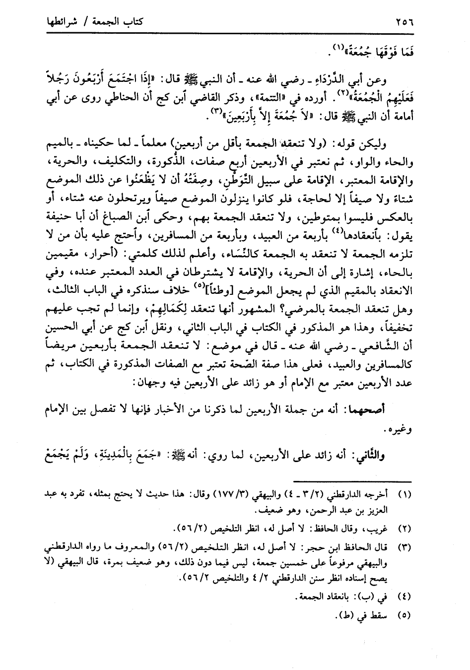 وعن أبى الدَّرْدَاءِ -رضي الله عنه- أن النبي -صلى الله عليه وسلم- قال: "إذَا اجْتَمَعَ أَرْبَعُونَ رَجُلاً فَعَلَيْهِمُ الْجُمُعَةُ" (¬2). أورده في "التتمة"، وذكر القاضي ابن كج أن الحناطي روى عن أبي أمامة أن النبي -صلى الله عليه وسلم- قال: "لاَ جُمُعَةَ إِلاَّ بِأرْبَعِينَ" (¬3).