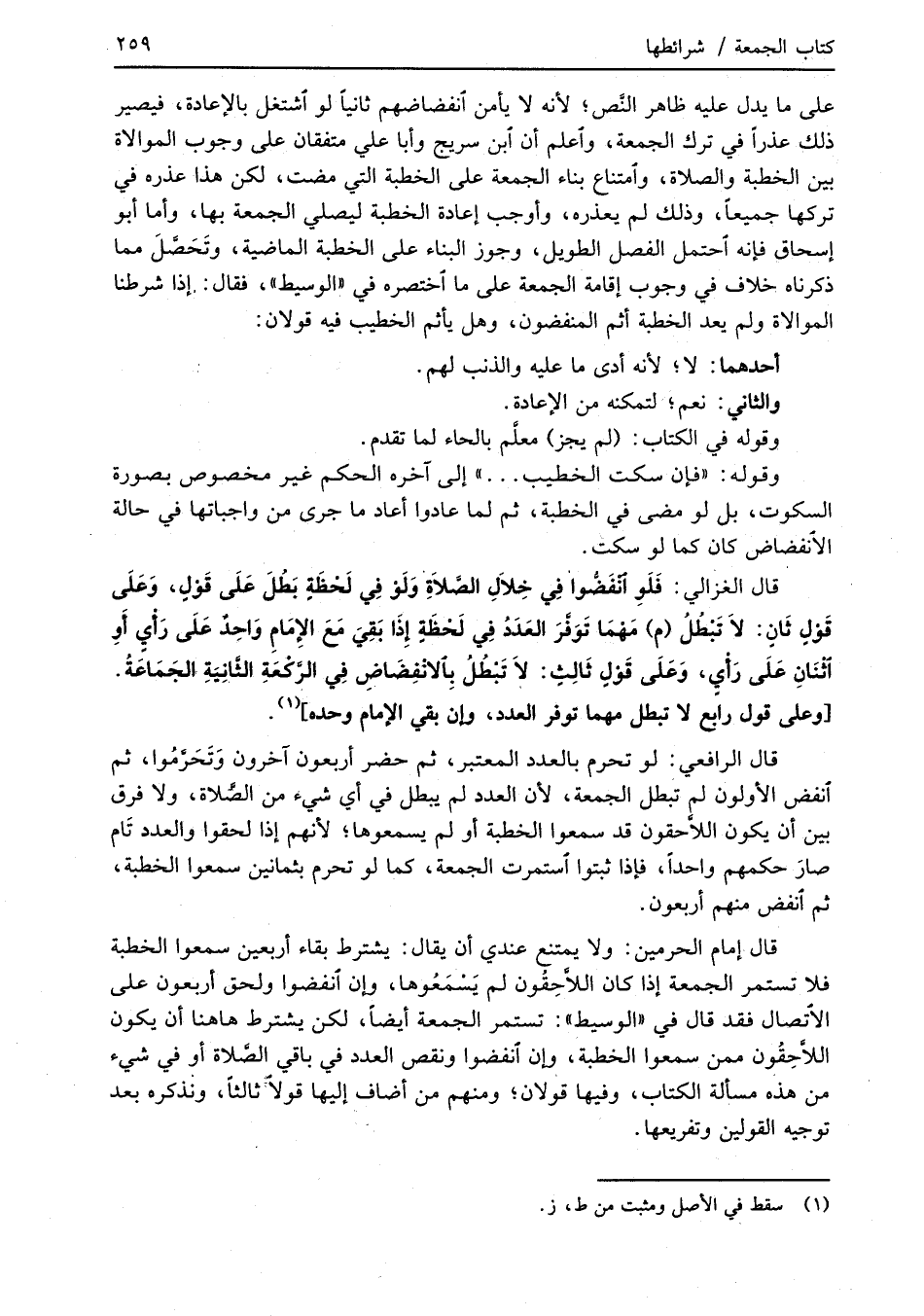 قال إمام الحرمين: ولا يمتنع عندي أن يقال: يشترط بقاء أربعين سمعوا الخطبة فلا تستمر الجمعة إذا كان اللاَّحِقُون لم يَسْمَعُوها، وإن انفضوا ولحق أربعون على الاتصال فقد قال في "الوسيط": تستمر الجمعة أيضاً، لكن يشترط هاهنا أن يكون اللاَّحِقُون ممن سمعوا الخطبة، وإن انفضوا ونقص العدد في باقي الصَّلاة أو في شيء من هذه مسألة الكتاب، وفيها قولان؛ ومنهم من أضاف إليها قولاً ثالثاً، ونذكره بعد توجيه القولين وتفريعها.