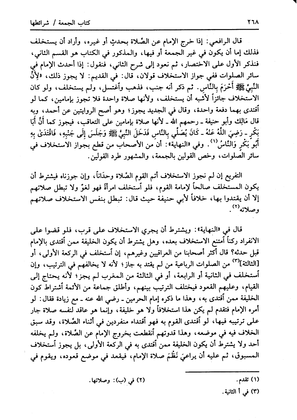 قال في "النهاية": ويشترط أن يجري الاستخلاف على قرب، فلو قضوا على الانفراد ركناً امتنع الاستخلاف بعده، وهل يشترط أن يكون الخليفة ممن اقتدى بالإمام قبل حدثه؟ قال أكثر أصحابنا من العراقيين وغيرهم، إن استخلف في الركعة الأولى، أو [الثالثة] (¬3) من الصلوات الرباعية من لم يقتد به جاز؛ لأنه لا يخالفهم في الترتيب، وإن استخلف في الثانية أو الرابعة، أو في الثالثة من المغرب لم يجز؛ لأنه يحتاج إلى القيام، وعليهم القعود فيختلف الترتيب بينهم، وأطلق جماعة من الأئمة اشتراط كون الخليفة ممن اقتدى به، وهذا ما ذكره إمام الحرمين -رضي الله عنه- مع زيادة فقال: لو أمره الإمام فتقدم لم يكن هذا استخلافاً ولا هو خليفة، وإنما هو عاقد لنفسه صلاة جار على ترتيبه فيها، لو اقتدى القوم به فهو اقتداء منفردين في أثناء الصَّلاة، وقد سبق الخلاف فيه في موضعه، وهذا قدوتهم انقطعت بخروج الإمام عن الصَّلاة، ولم يخلفه أحد ولا يشترط أن يكون الخليفة ممن اقتدى به في الركعة الأولى، بل يجوز استخلاف المسبوق، ثم عليه أن يراعيَ نَظْمَ صلاة الإمام، فيقعد في موضع قعوده، ويقوم في