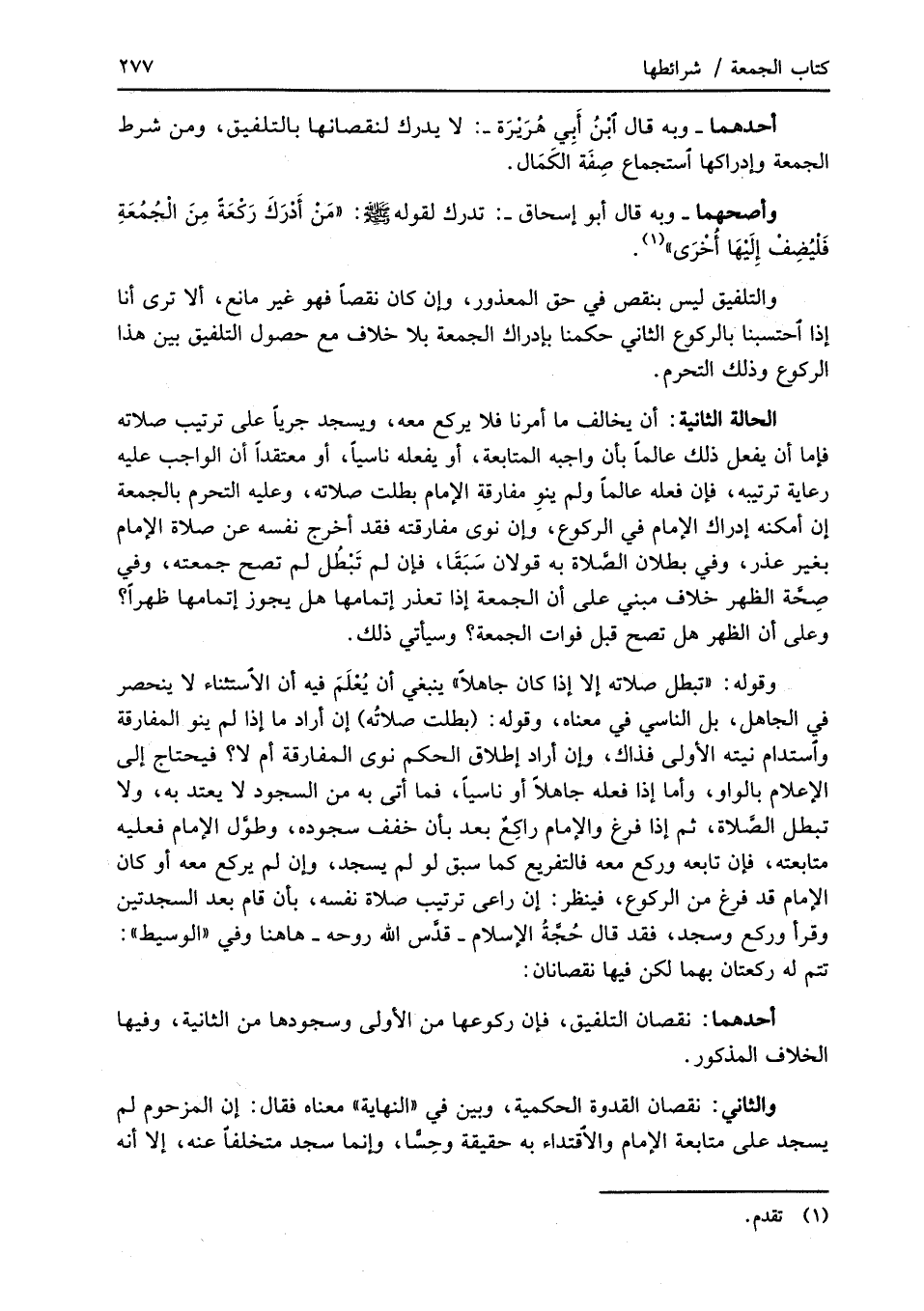 والتلفيق ليس بنقص في حق المعذور، وإن كان نقصاً فهو غير مانع، ألا ترى أنا إذا أحتسبنا بالركوع الثاني حكمنا بإدراك الجمعة بلا خلاف مع حصول التلفيق بين هذا الركوع وذلك التحرم.