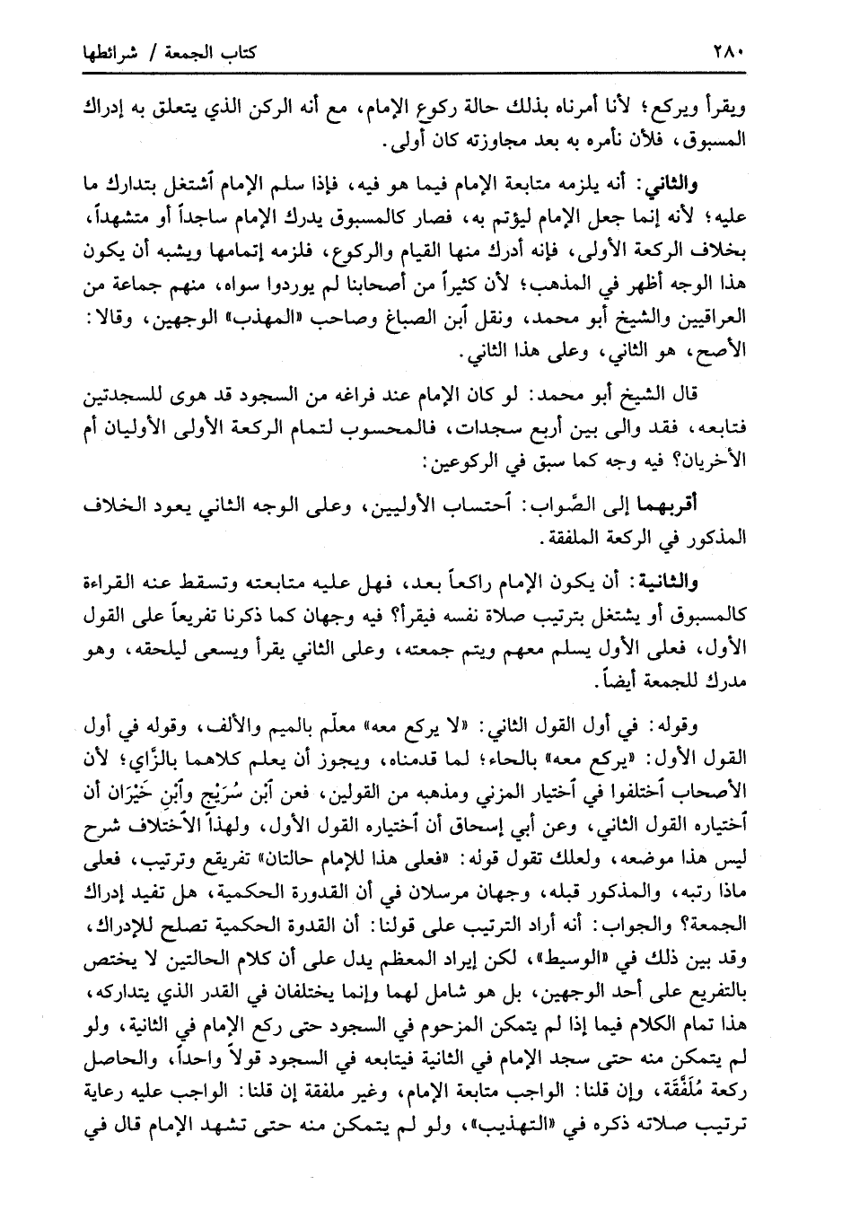 والثاني: أنه يلزمه متابعة الإمام فيما هو فيه، فإذا سلم الإمام اشتغل بتدارك ما عليه؛ لأنه إنما جعل الإمام ليؤتم به، فصار كالمسبوق يدرك الإمام ساجدًا أو متشهدًا، بخلاف الركعة الأولى، فإنه أدرك منها القيام والركوع، فلزمه إتمامها ويشبه أن يكون هذا الوجه أظهر في المذهب؛ لأن كثيراً من أصحابنا لم يوردوا سواه، منهم جماعة من العراقيين والشيخ أبو محمد، ونقل ابن الصباغ وصاحب "المهذب" الوجهين، وقالا: الأصح، هو الثاني، وعلى هذا الثاني.