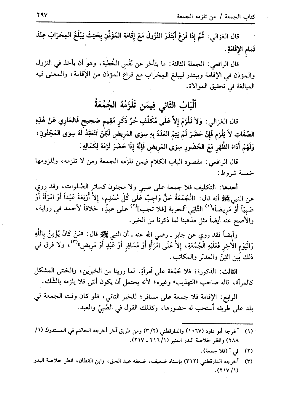 الْبَابُ الثّاني فِيمَن تَلْزَمُهُ الجُمُعَةُ