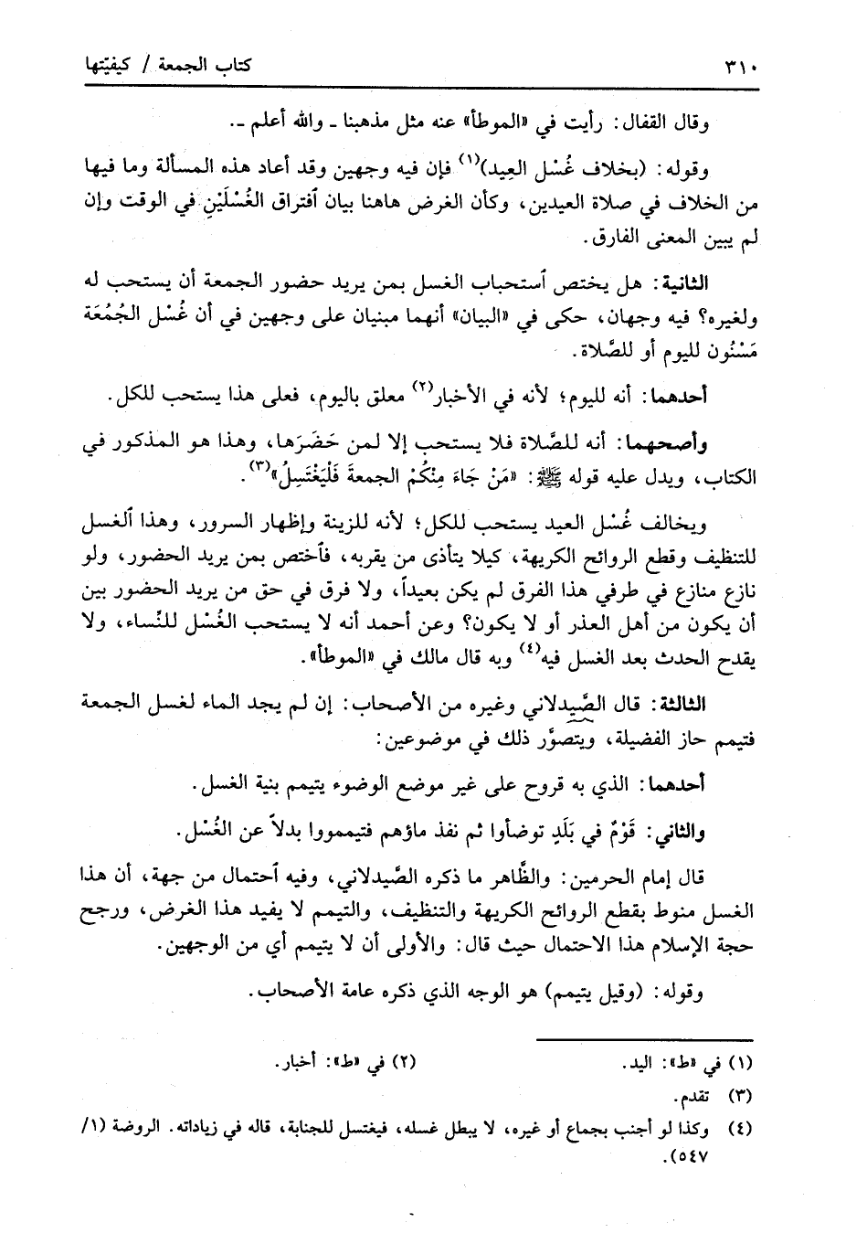 وأصحهما: أنه للصَّلاة فلا يستحب إلا لمن حَضَرَها، وهذا هو المذكور في الكتاب، ويدل عليه قوله -صلى الله عليه وسلم-: "مَن جَاءَ مِنْكُمْ الجمعةَ فَلْيَغْتَسِلُ" (¬3).
