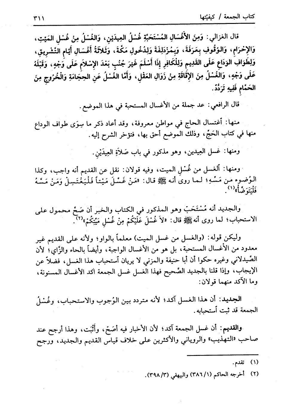 والقديم: أن غسل الجمعة آكد؛ لأن الأخبار فيه أصَحّ، وأَثْبَت، وهذا أرجح عند صاحب "التهذيب" والروياني والأكثرين على خلاف قياس القديم والجديد، ورجح