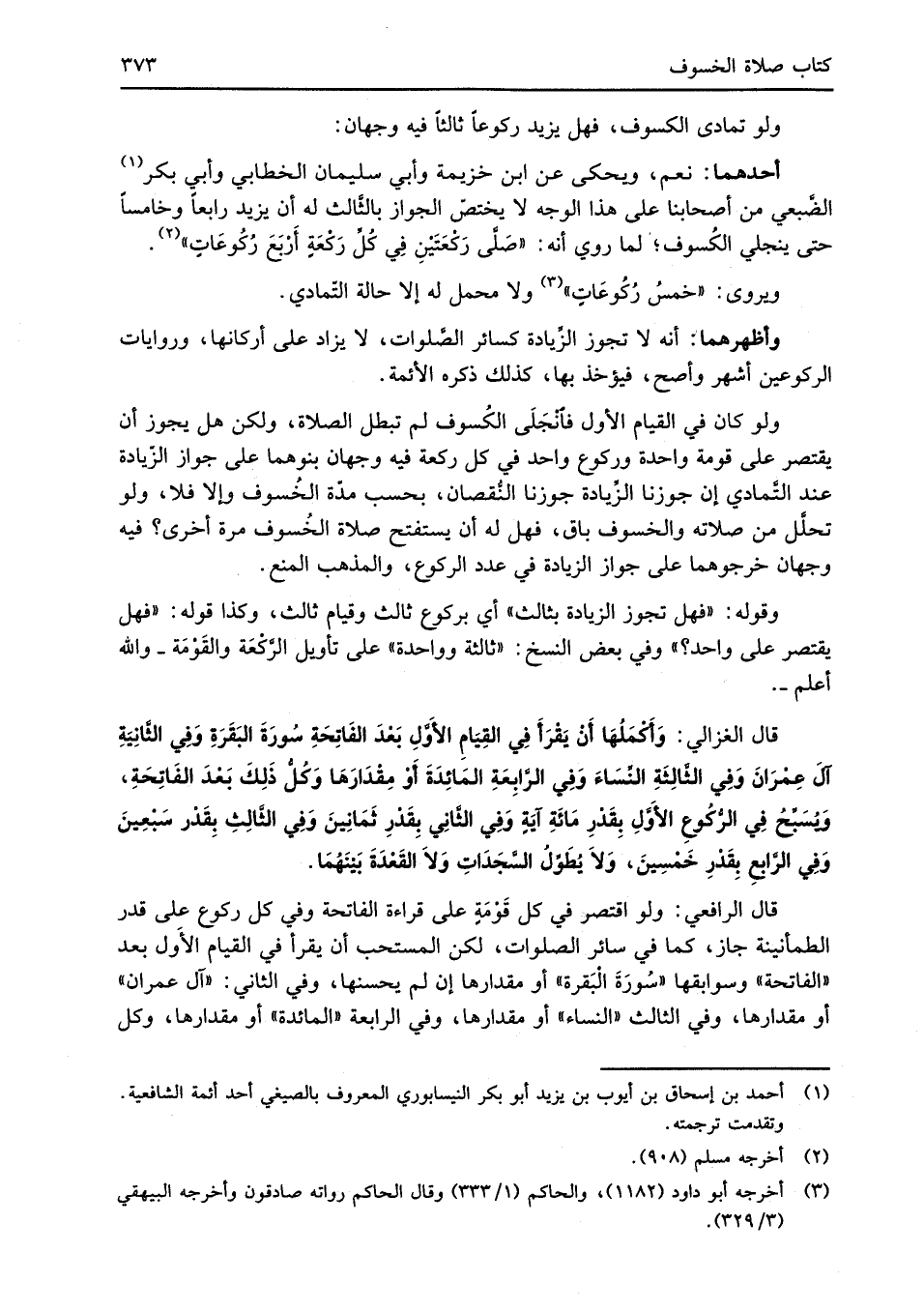 وقوله: "فهل تجوز الزيادة بثالث" أي بركوع ثالث وقيام ثالث، وكذا قوله: "فهل يقتصر على واحد؟ " وفي بعض النسخ: "ثالثة وواحدة" على تأويل الرَّكْعَة والقَوْمَة -والله أعلم-.
