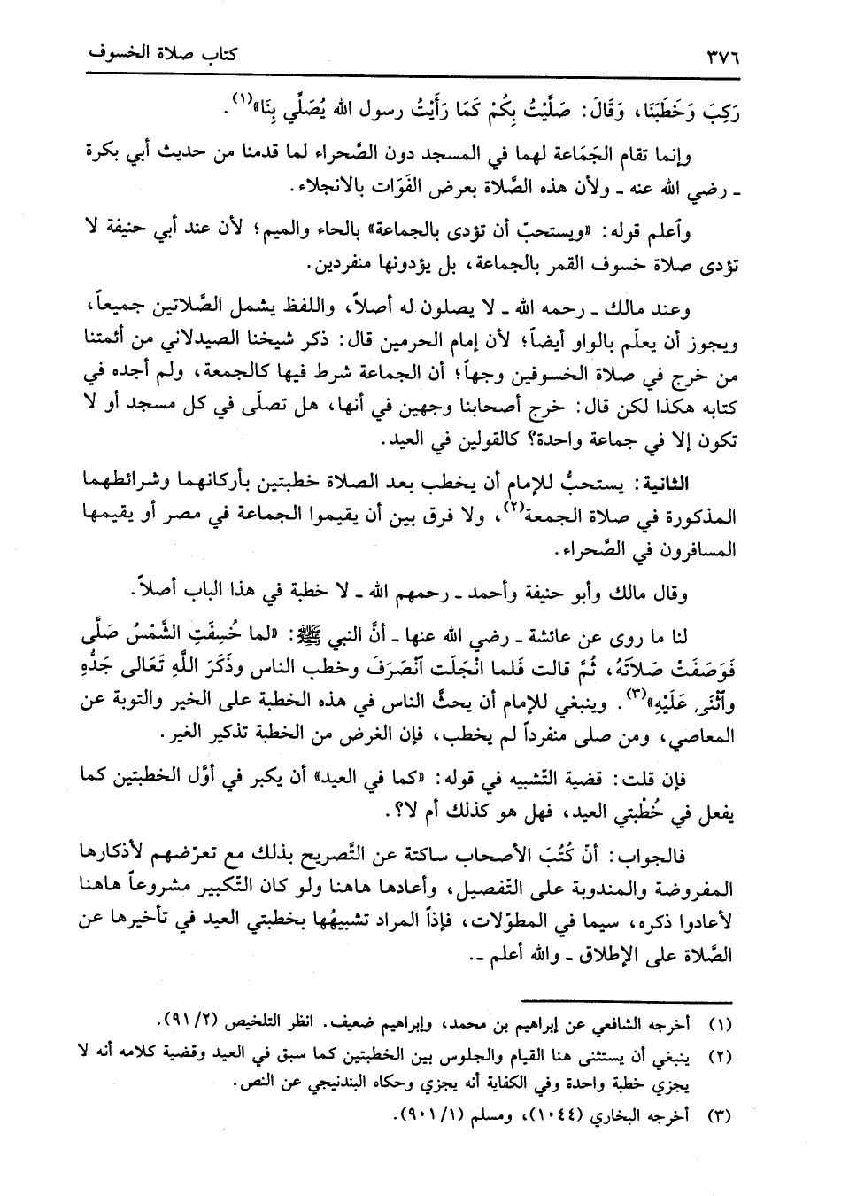 واعلم قوله: "ويستحبّ أن تؤدى بالجماعة" بالحاء والميم؛ لأن عند أبي حنيفة لا تؤدى صلاة خسوف القمر بالجماعة، بل يؤدونها منفردين.