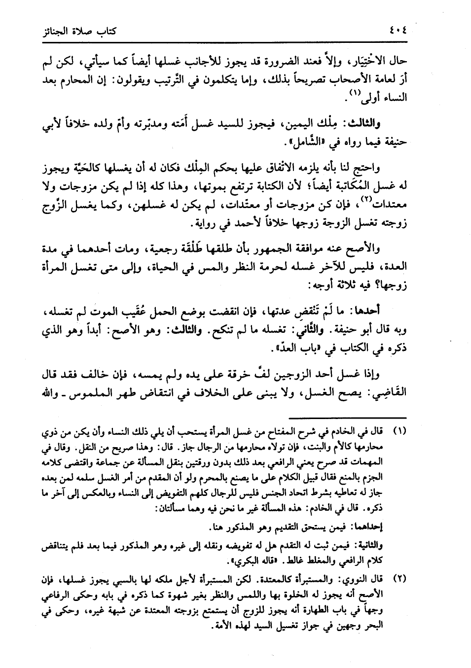 (¬2) قال النووي: والمستبرأة كالمعتدة. لكن المستبرأة لأجل ملكه لها بالسبي يجوز غسلها، فإن الأصح أنه يجوز له الخلوة بها واللمس والنظر بغير شهوة كما ذكره في بابه وحكى الرفاعي وجهاً في باب الطهارة أنه يجوز للزوج أن يستمتع بزوجته المعتدة عن شبهة غيره، وحكى في البحر وجهين في جواز تغسيل السيد لهذه الأمة.