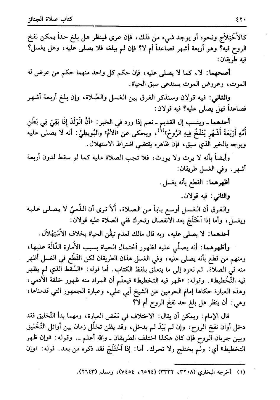 والثاني: فيه قولان وسنذكر الفرق بين الغسل والصَّلاة، وإن بلغ أْربعة أشهر فصاعداً فهل يصلى عليه؟ فيه قولان:
