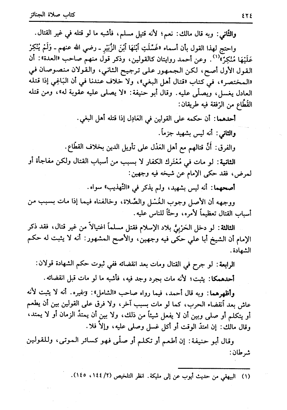 واحتج لهذا القول بأن أسماء "غَسَّلَتِ ابْنَهَا ابْنَ الزُّبَيْرِ -رضي الله عنهم- وَلَمْ يُنْكِرْ عَلَيْهَا مُنْكِرٌ" (¬1). وعن أحمد روايتان كالقولين، وذكر قول منهم صاحب "العدة": أن القول الأول أصح، لكن الجمهور على ترجيح الثاني، والقولان منصوصان في "المختصر"، في كتاباً "قتال أهل البغي"، ولا خلاف عندنا في أن البَاغِي إذا قتله العادل يغسل، ويصلّى عليه. وقال أبو حنيفة: "لا يصلى عليه عقوبة له"، ومن قتله القُطَّاع من الرّفقة فيه طريقان: