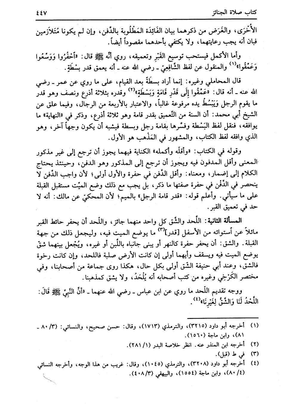 ووجه تقديم اللّحد ما روي عن ابن عباس -رضي الله عنهما- "أنَّ النَّبِيَّ -صلى الله عليه وسلم- قَالَ: اللَّحْدُ لَنَا وَالشَّقُّ لِغَيْرِنَا" (¬4).