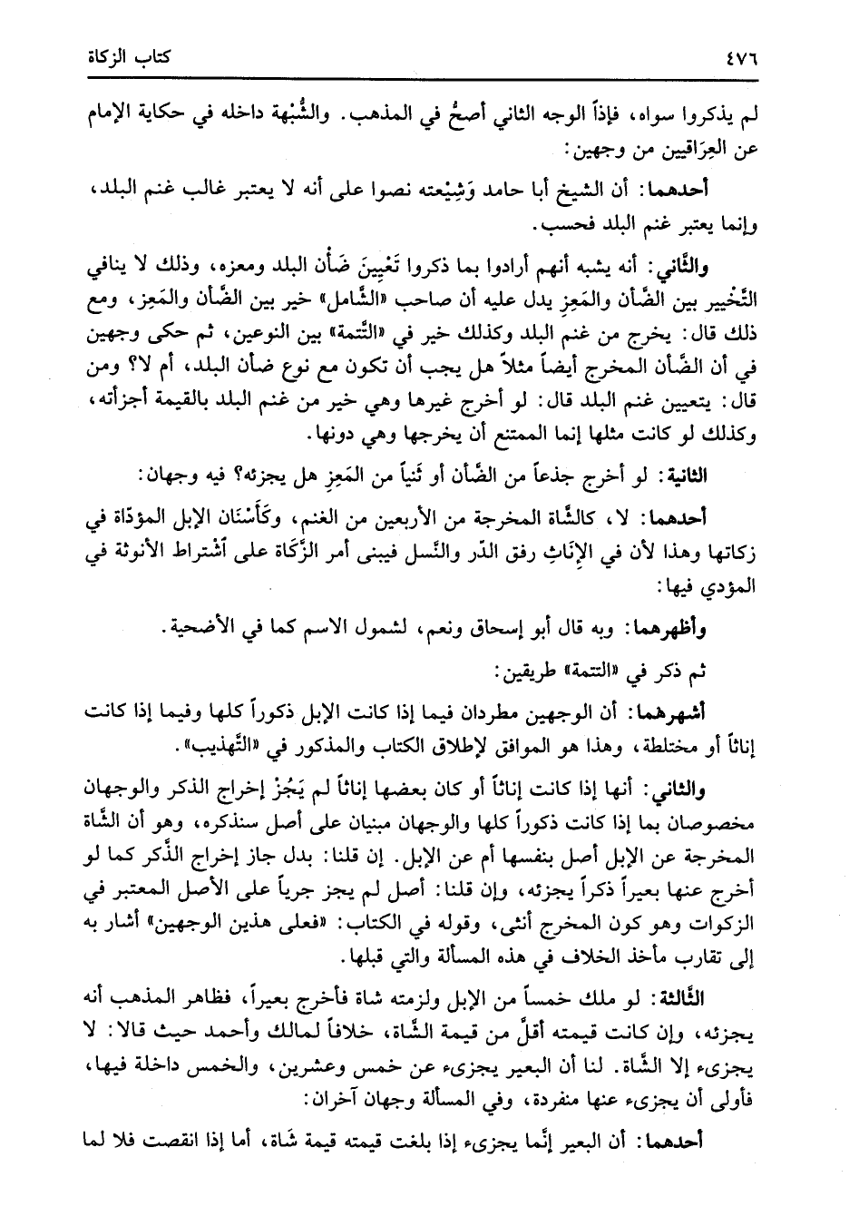 أشهرهما: أن الوجهين مطردان فيما إذا كانت الإبل ذكوراً كلها وفيما إذا كانت إناثاً أو مختلطة، وهذا هو الموافق لإطلاق الكتاب والمذكور في "التهذيب".