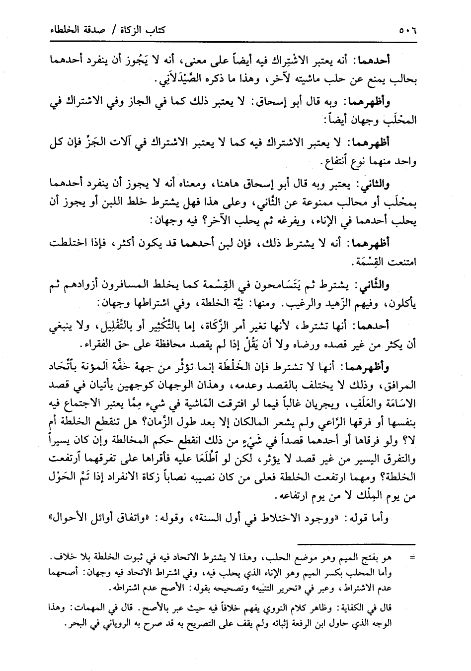 أحدهما: أنه يعتبر الاشْتِراك فيه أيضاً على معنى، أنه لا يَجُوز أن ينفرد أحدهما بحالب يمنع عن حلب ماشيته لآخر، وهذا ما ذكره الصَّيْدَلاَنِي.